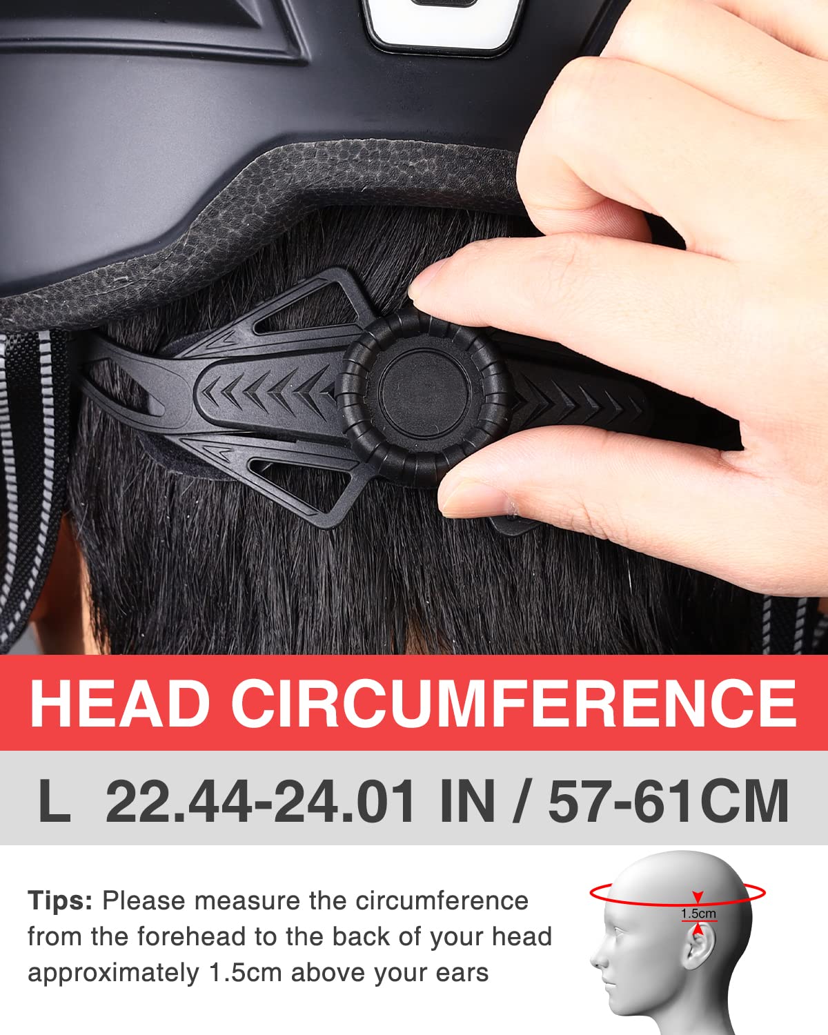 - Adjustable Dial System: The helmet features a one-handed adjustable dial system that allows for an easy, secure fit with a circumference range of 22.44 - 24.41 inches (57-62 cm), making it suitable for most riders.