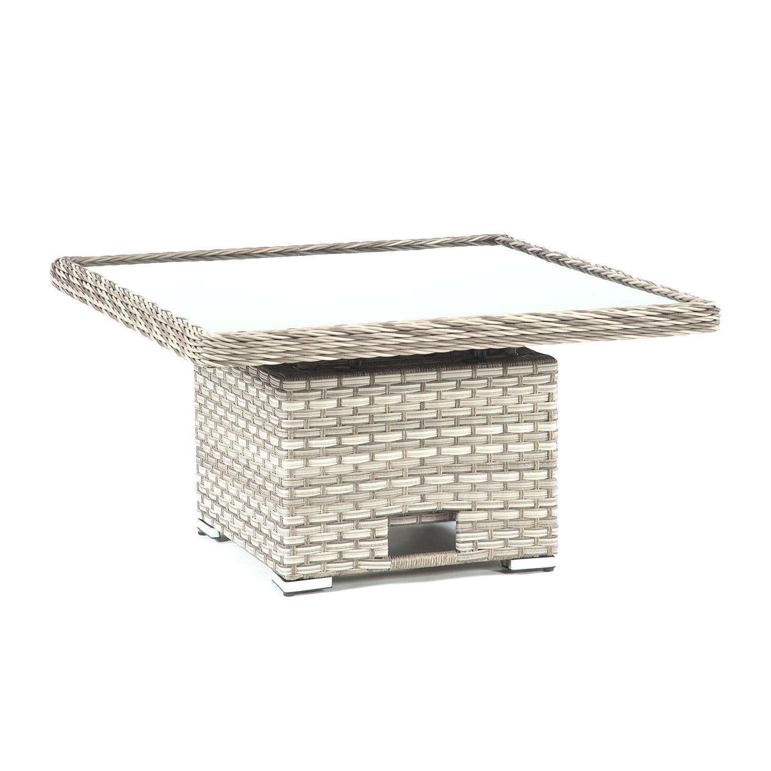 - Adjustable Glass Top Table: The table can be raised to dining height or lowered for use as a coffee table, offering versatile functionality for any occasion.