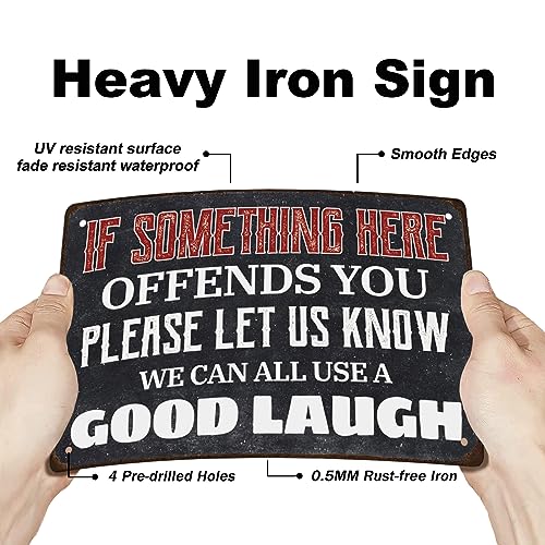 Add a touch of humor and charm to your space with the SUPERDANT Vintage Garage Tin Sign. Featuring the witty phrase, "If Something Here Offends You Please Let Us Know We Can All Use a Good Laugh", this metal sign is perfect for dads who appreciate a blend of vintage design and playful humor. Whether it’s for a man cave, bar, or office, this tin sign creates a unique and welcoming atmosphere.