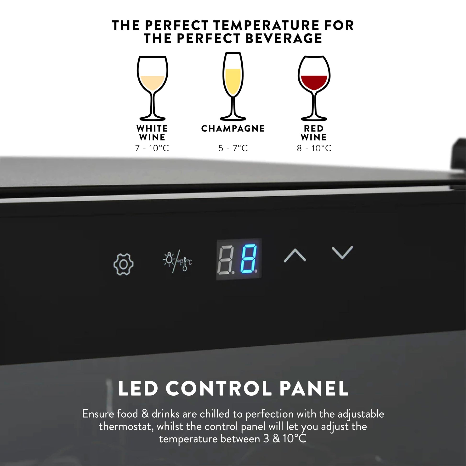 - LED Control Panel: Effortlessly adjust and monitor the temperature with the easy-to-read LED control panel. The thermostat allows for temperature adjustments between 3-10°C, ensuring your drinks stay at the perfect chill.