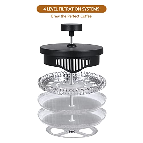 - Pure Taste and Rich Aroma: With a brewing time of just 4 minutes, this French press creates a cup of coffee with a full-bodied, aromatic flavor, ensuring each sip is rich and satisfying.