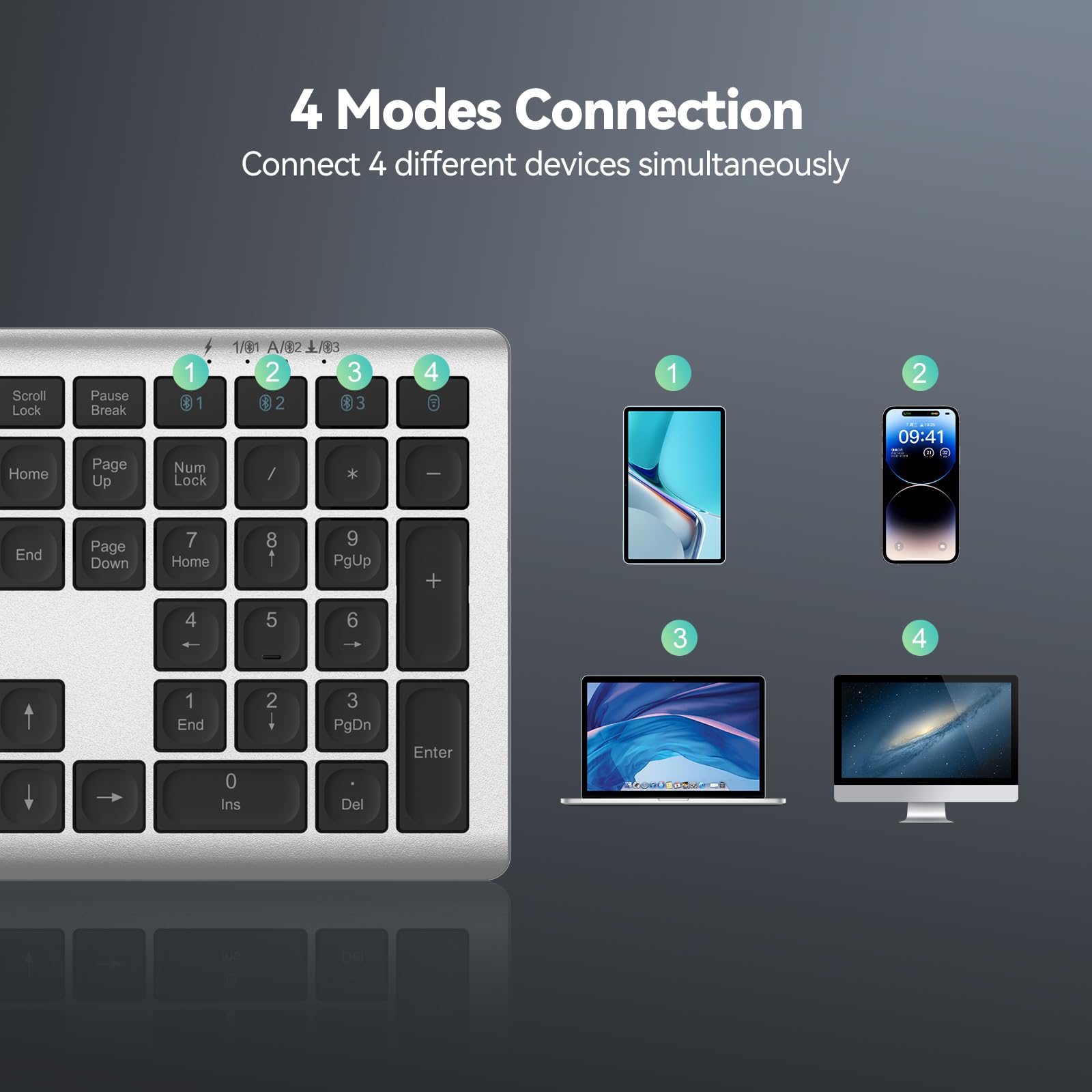 - Connection Modes: 3 Bluetooth (BT 5.0) + 1 2.4GHz Wireless