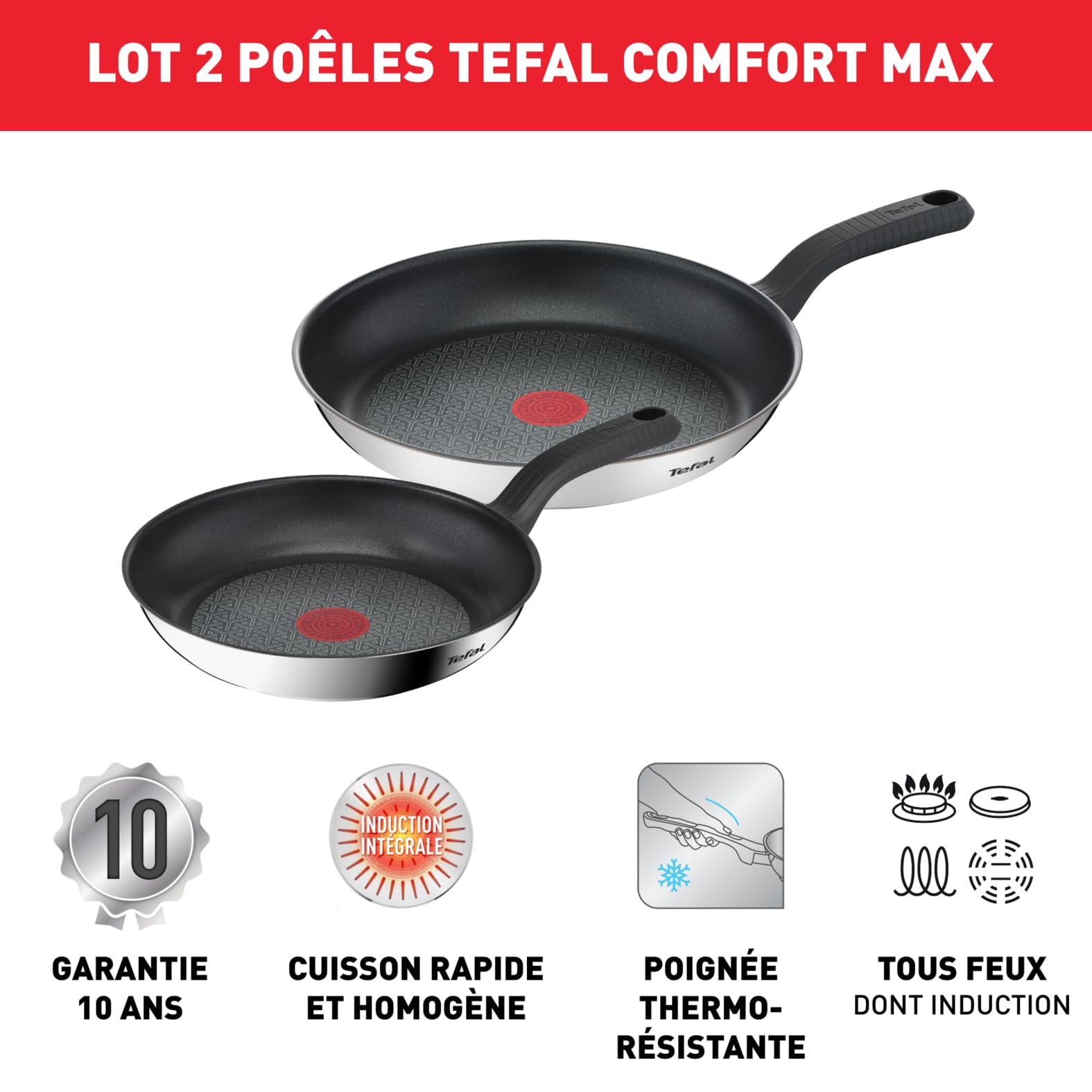 - Tefal 2 Piece Comfort Max | 24cm & 28cm Frying Pans | Stainless Steel, Silver, Black -