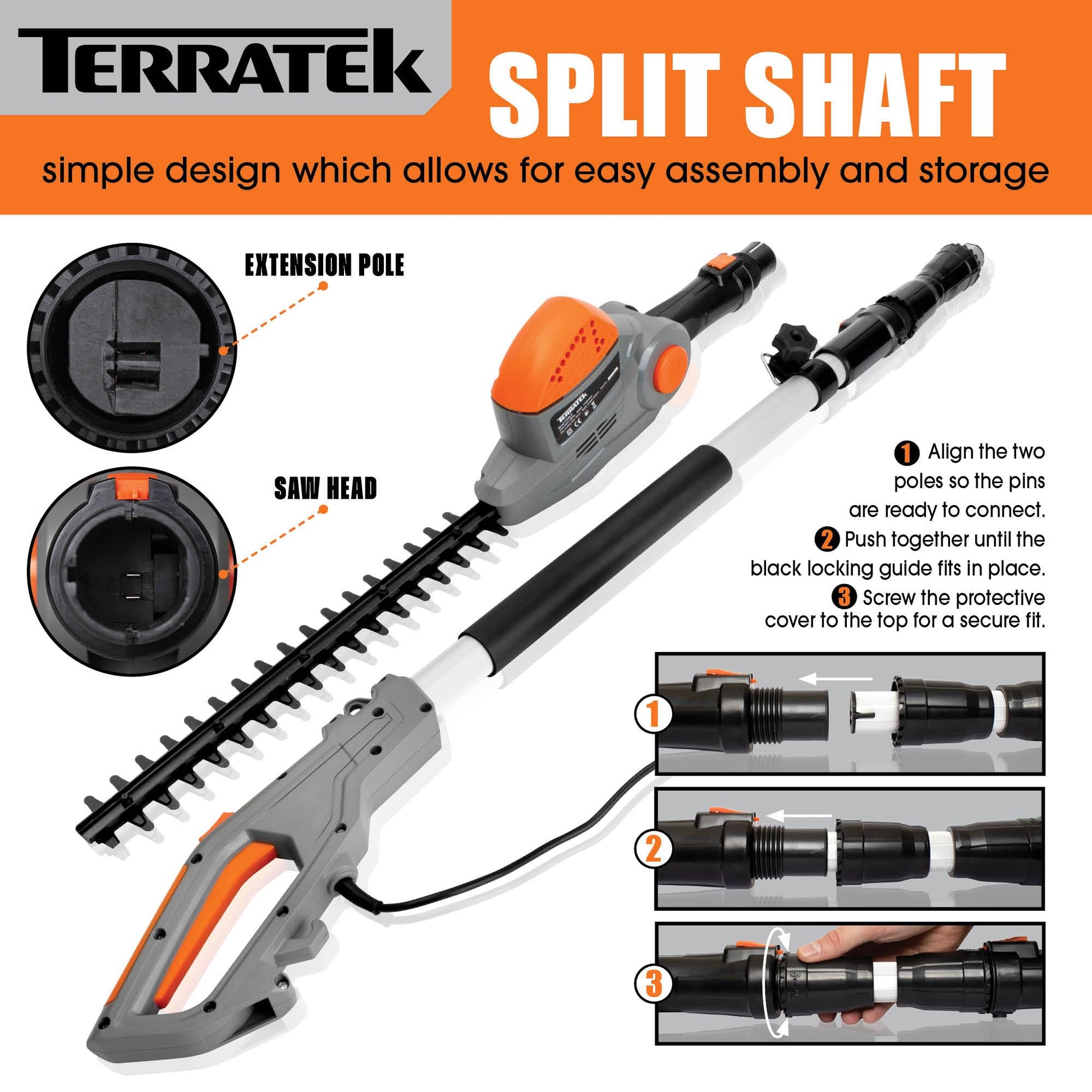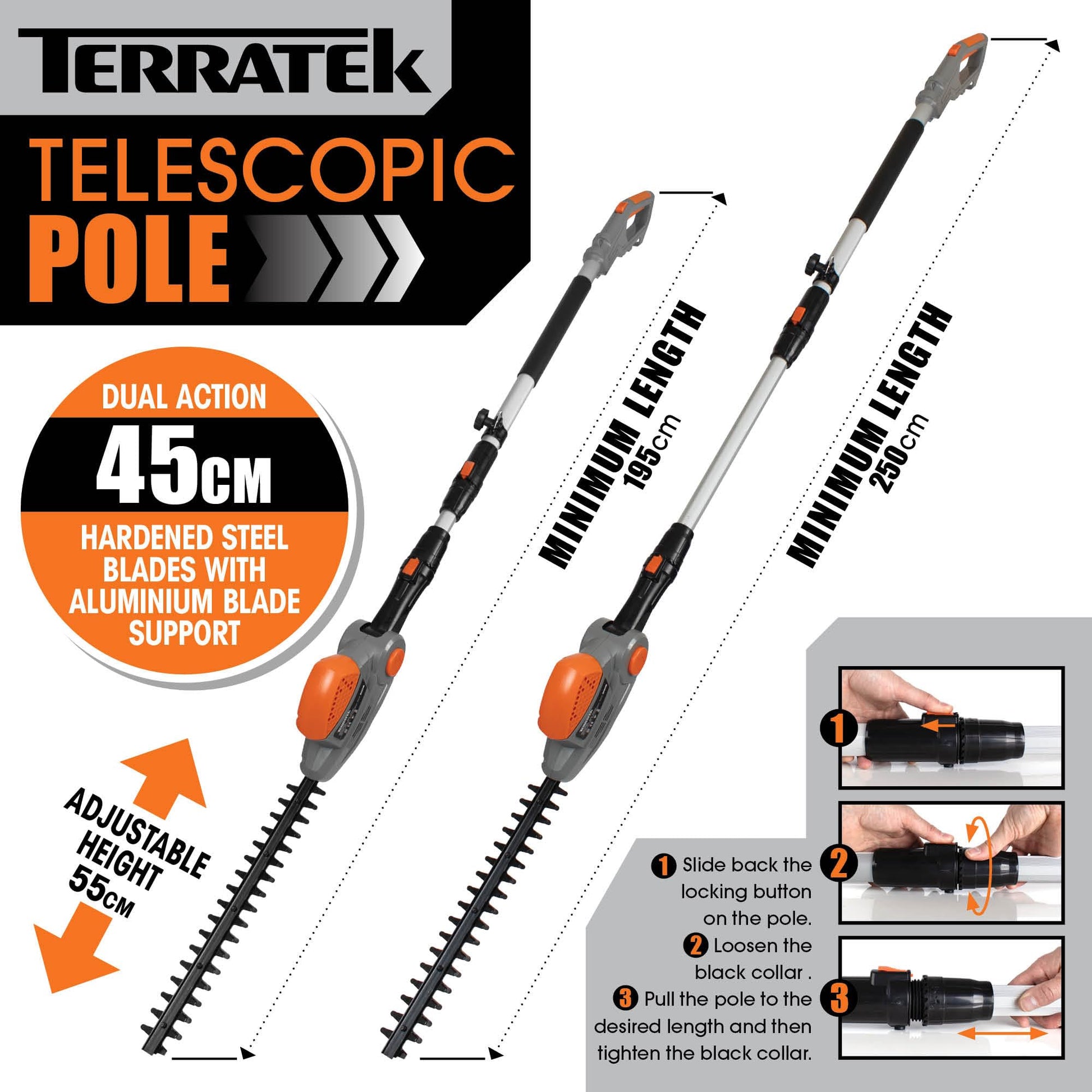 - Terratek Corded Extendable Pole Hedge Trimmer | 550W 2.5M | Telescopic Hedge Trimmer -