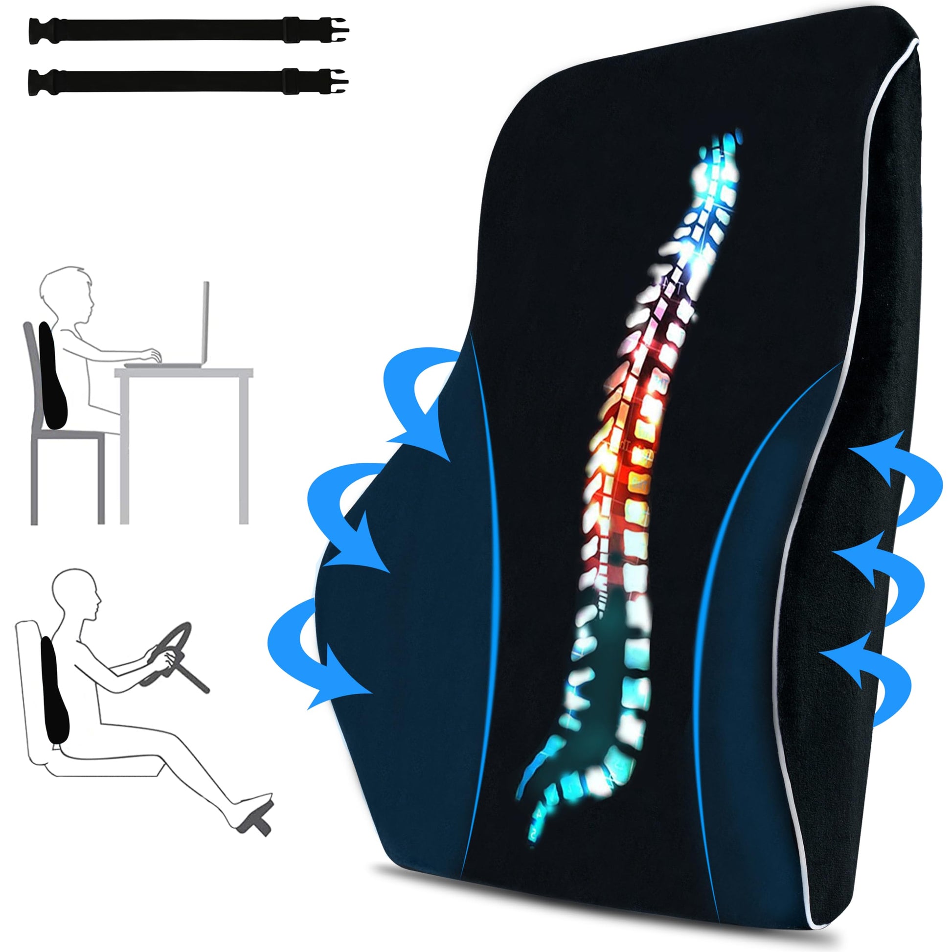 - Versatile and Adjustable with Straps: Suitable for various seating environments with adjustable straps for a secure fit and customizable support.