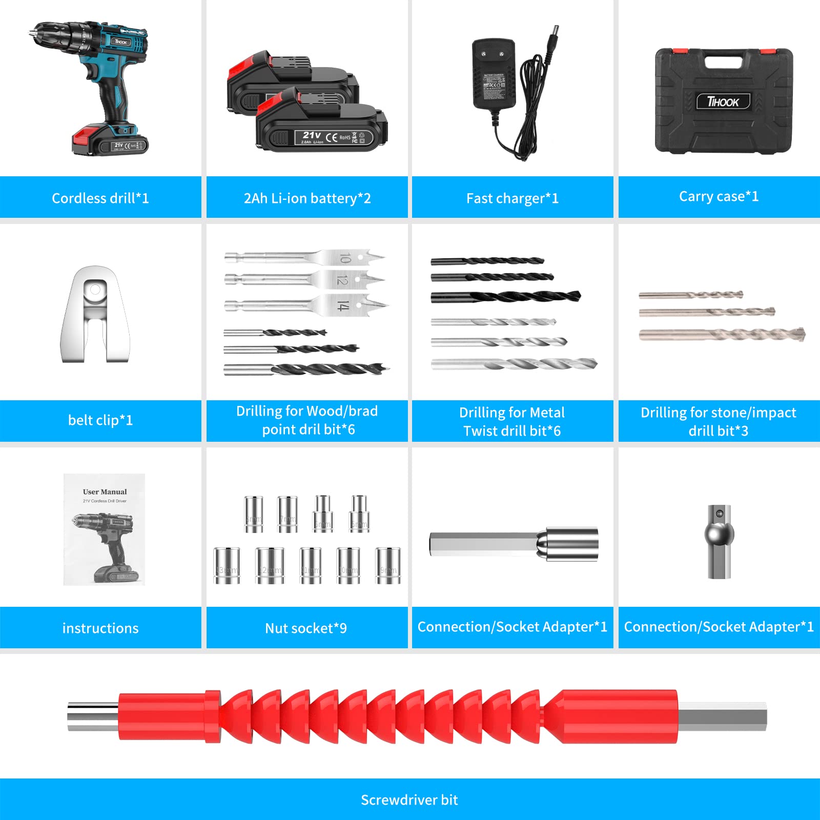 - TIHOOK Cordless Drill Driver 21V | Cordless Hammer Drill -