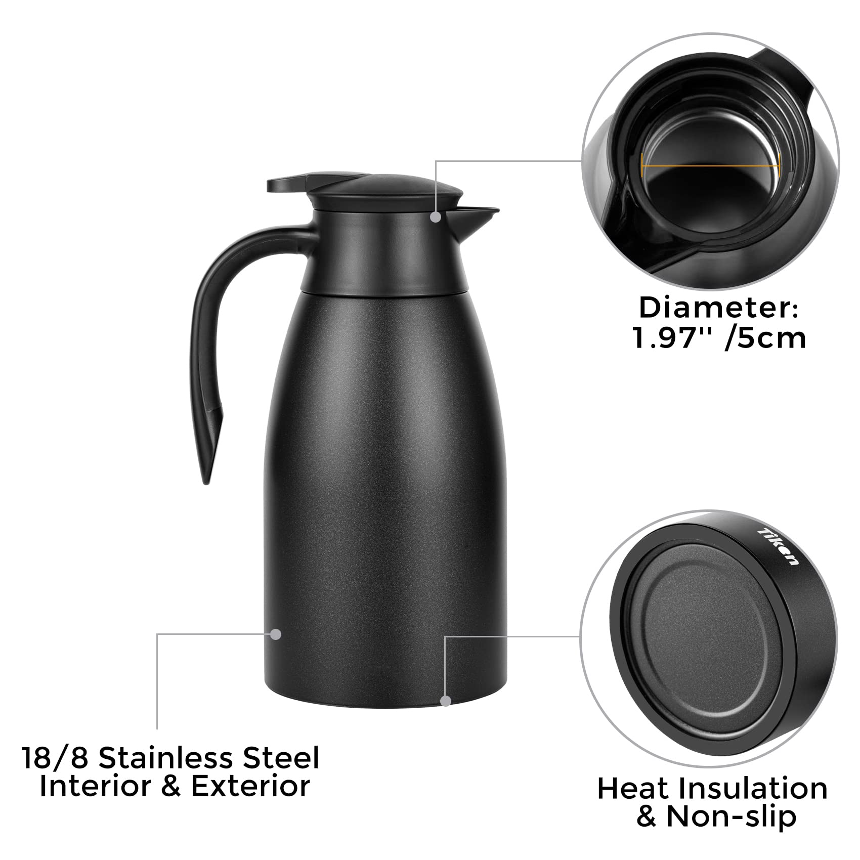 - Tiken 2L Thermal Coffee Carafe Jug | Stainless Steel | Insulated Vacuum Coffee Pot -