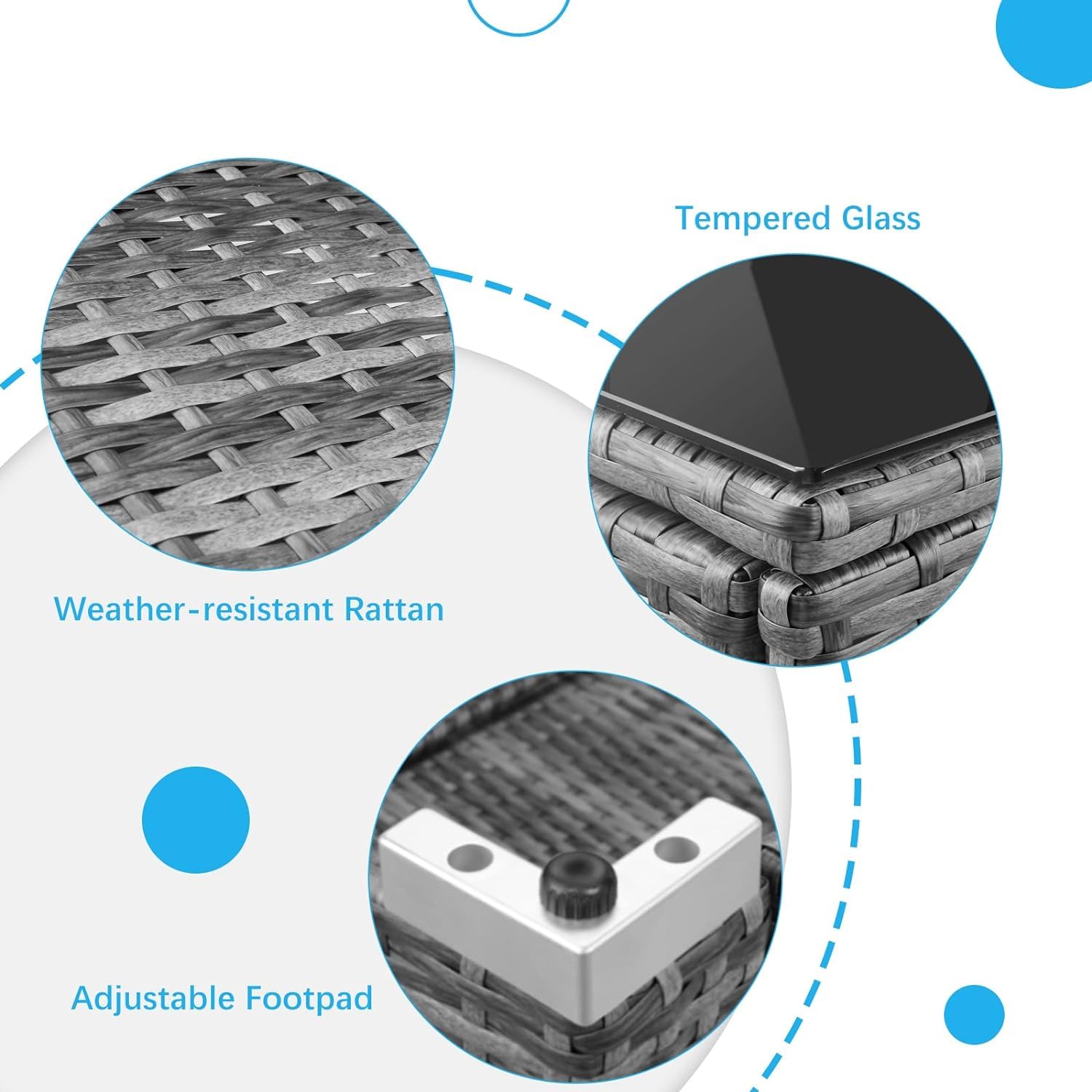 - Durable Materials: Made with high-quality PE rattan and reinforced with a sturdy metal frame, this lounge set is designed to withstand the elements, offering long-lasting use.