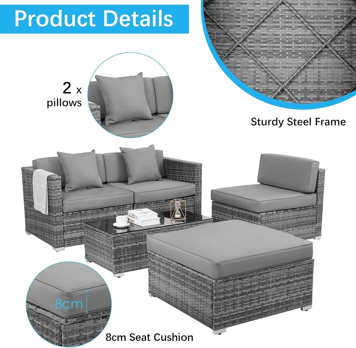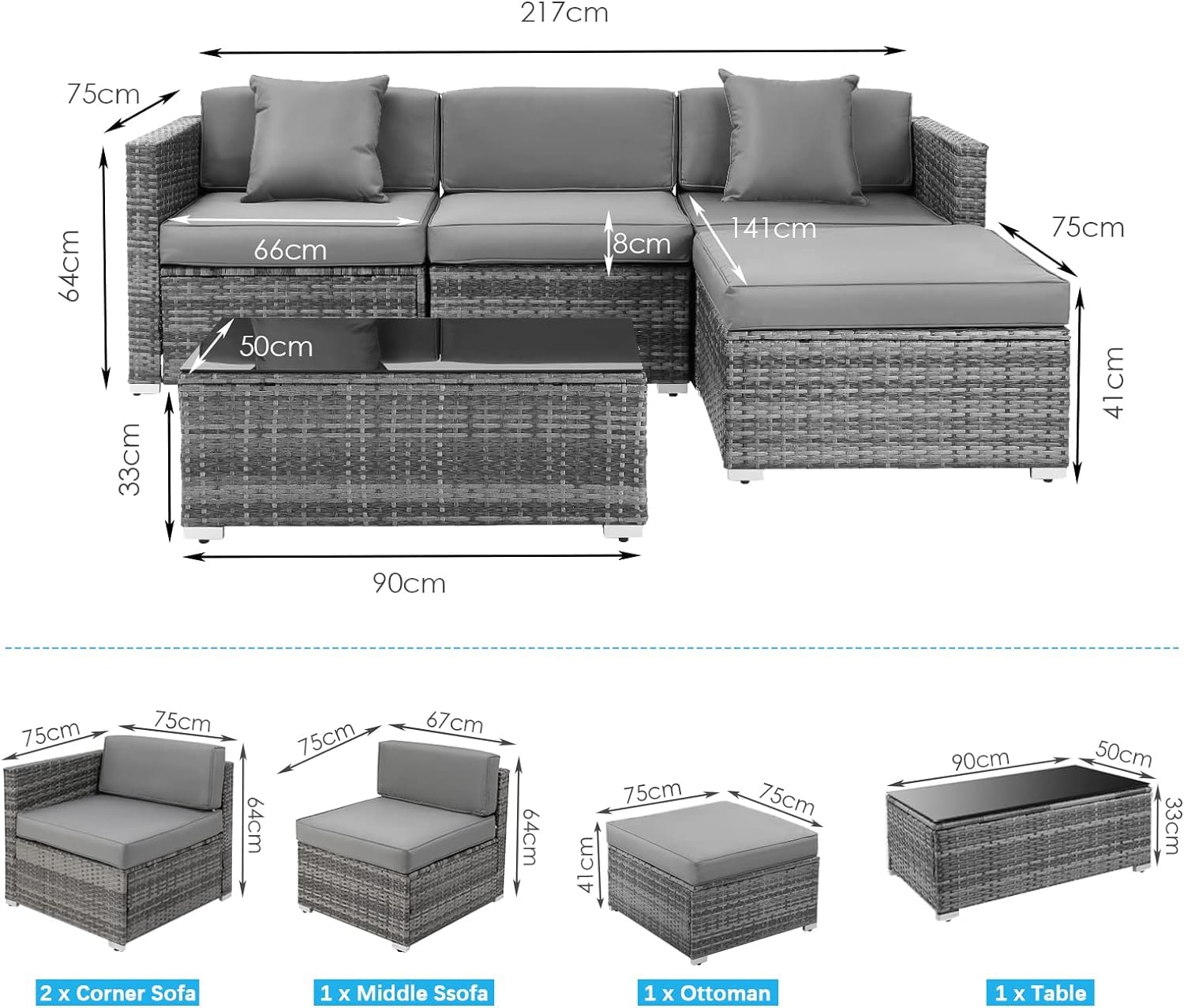 - TLGREEN 5PCS Garden Sofas Rattan Corner Furniture Set | All-Weather -