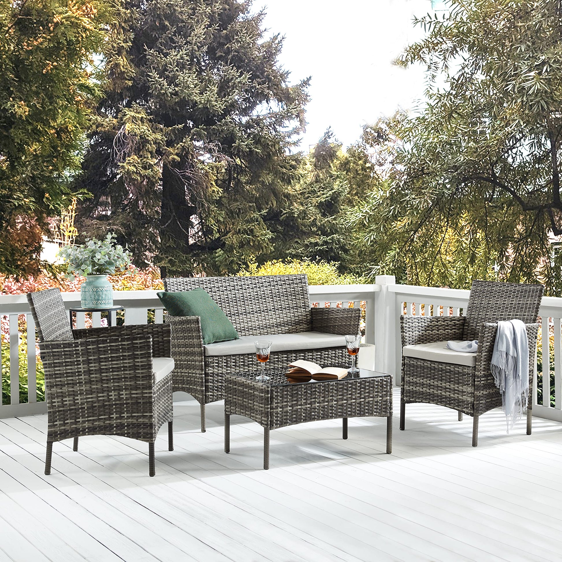 - TMEE Rattan Garden Outdoor Furniture Set | 4 Seaters Patio Conversation -