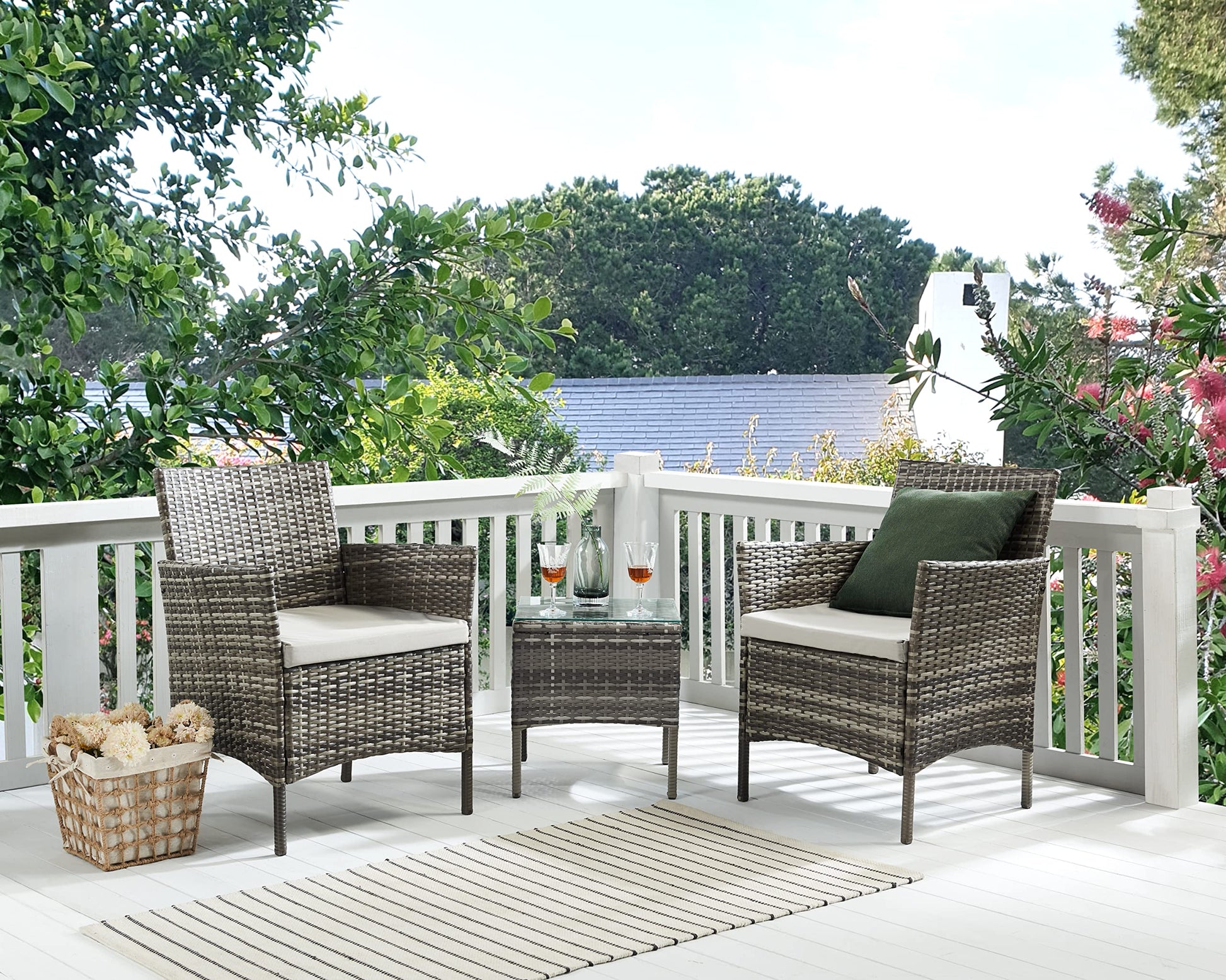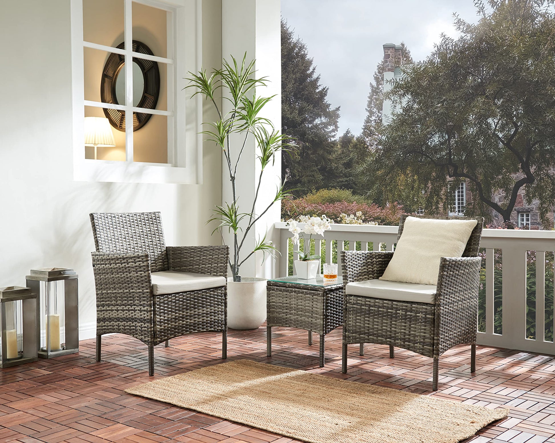 - TMEE Rattan Garden Outdoor Furniture Set Gray | 3 Pieces Patio Conversation Sets -