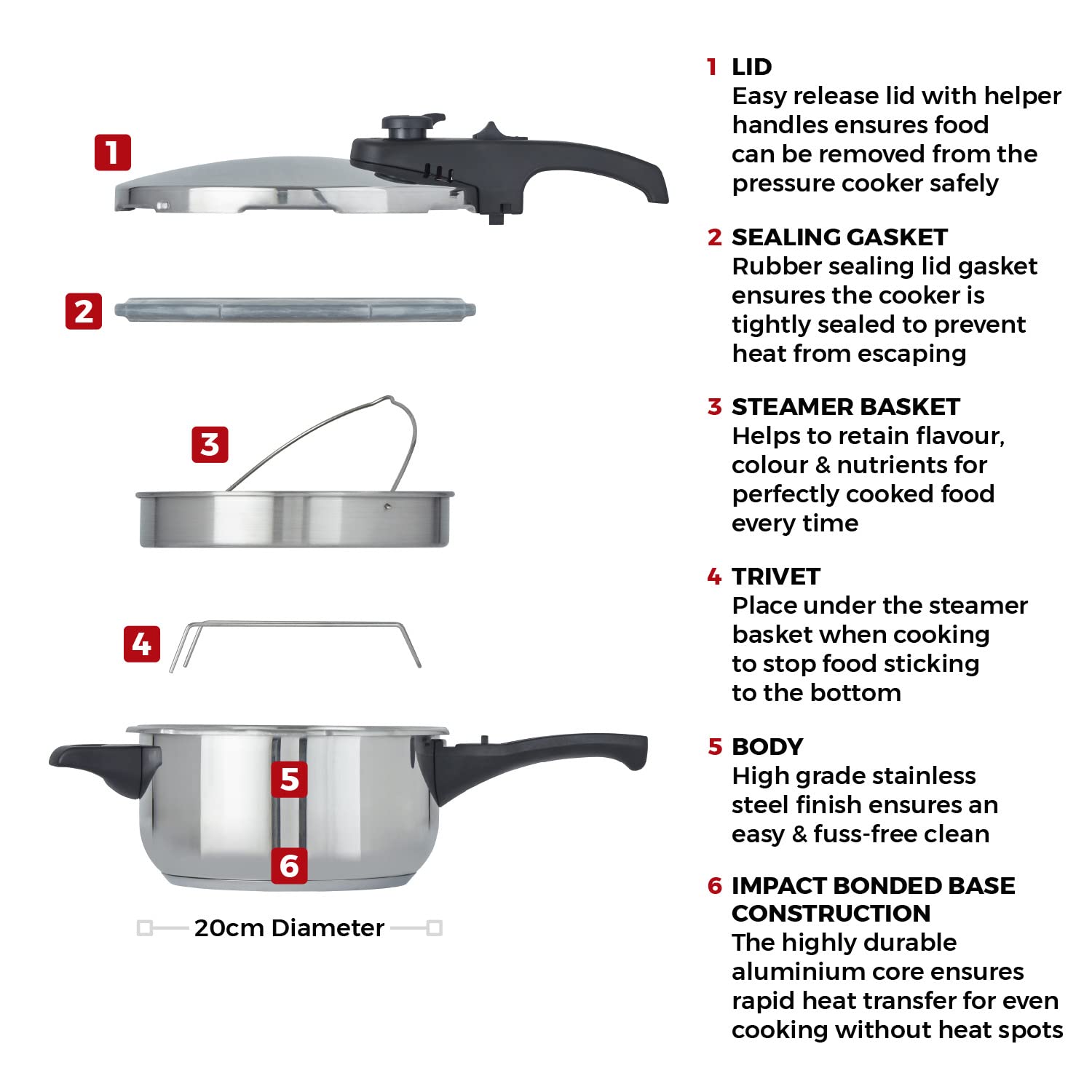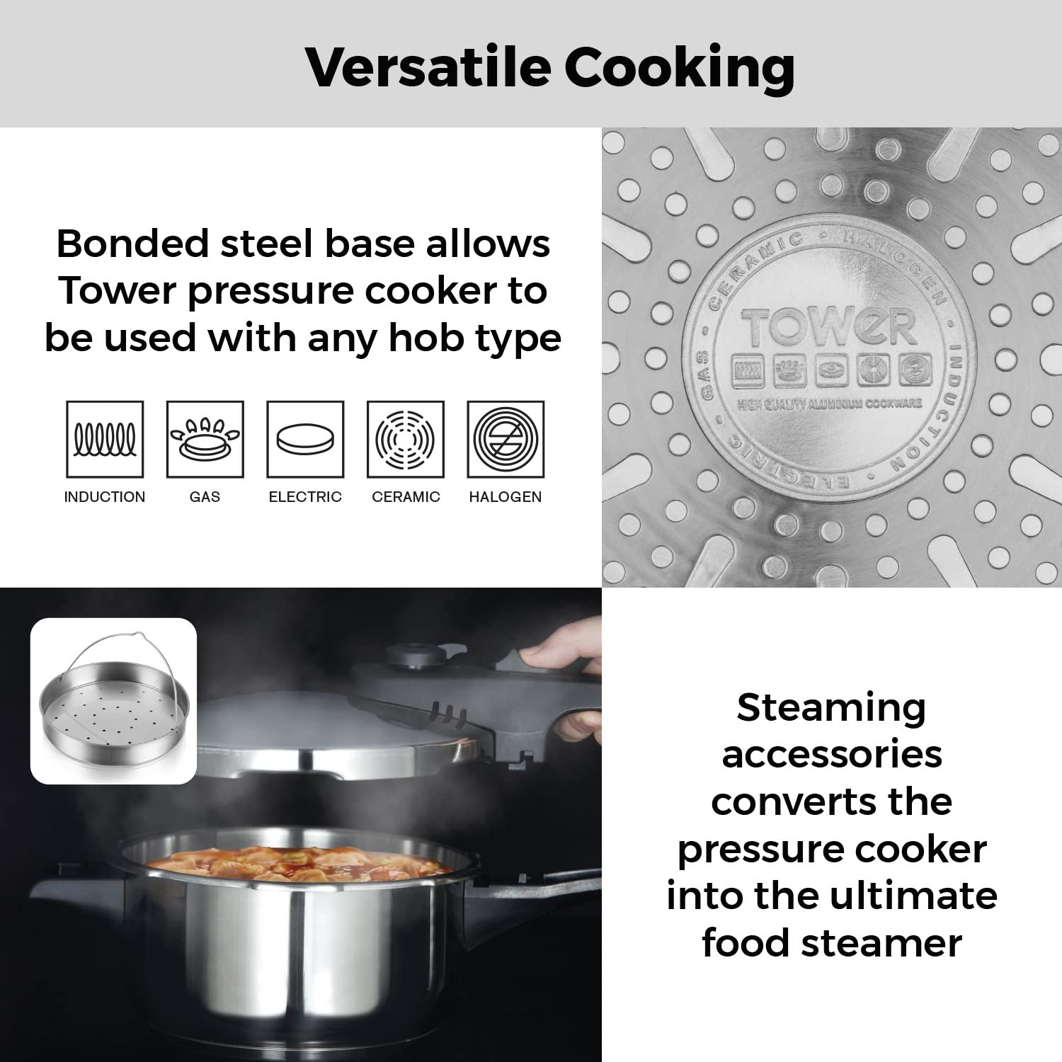 - Tower T80245 Stainless Steel Pressure Cooker | Steamer Basket | 3 Litre -