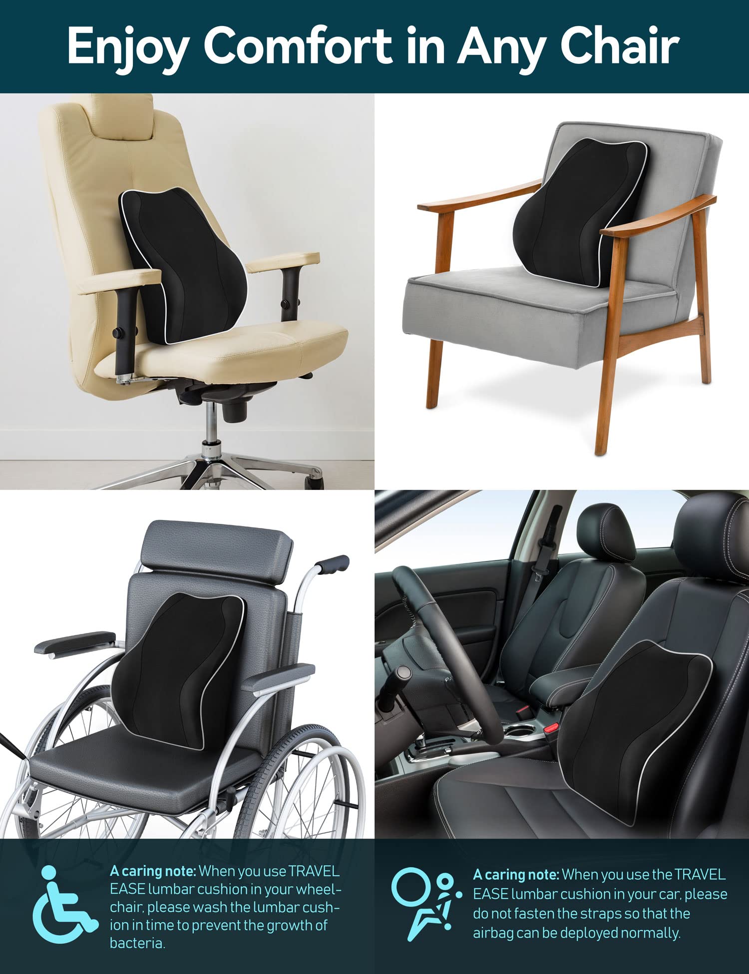 - Travel Ease Ergonomic Lumbar Support Cushion | Memory Foam Back Support Cushion -