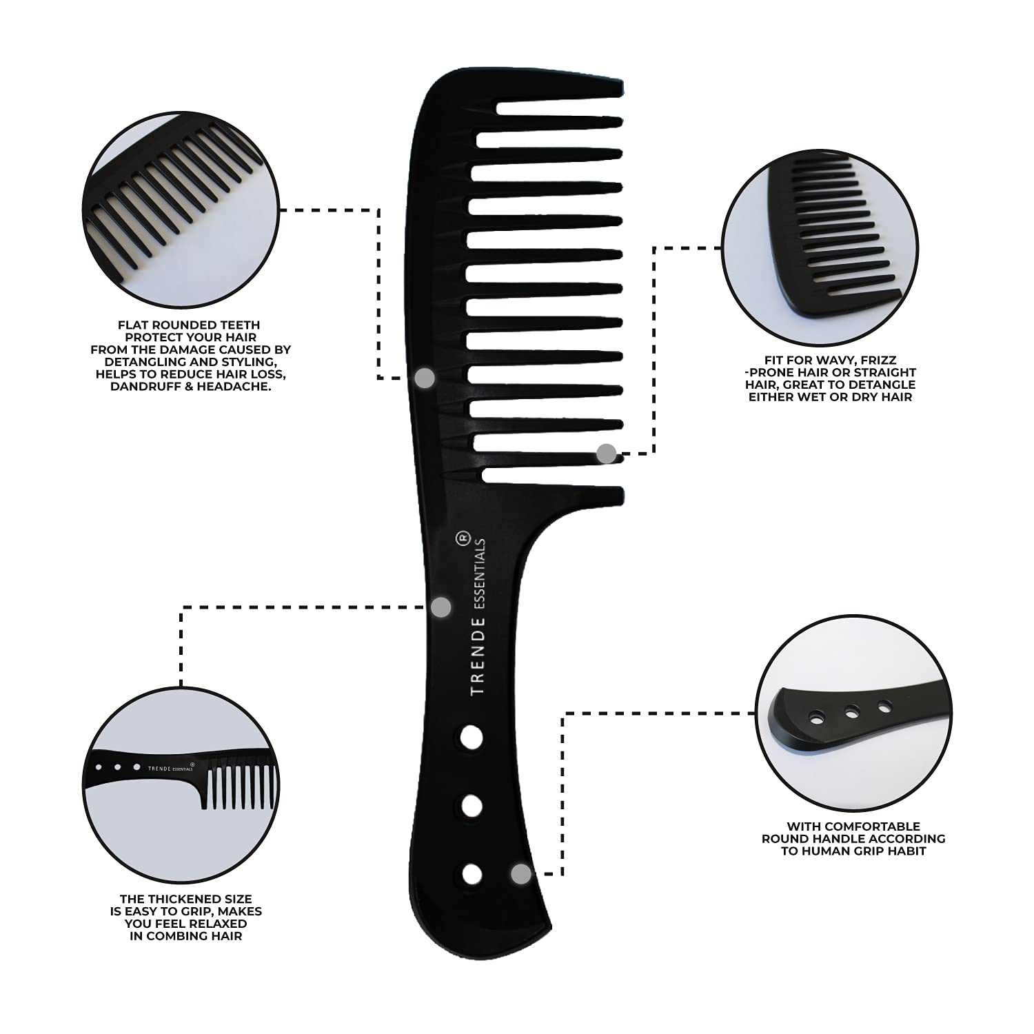 - Trende Essentials Wide Tooth Comb | Detangler | Heat Resistant -