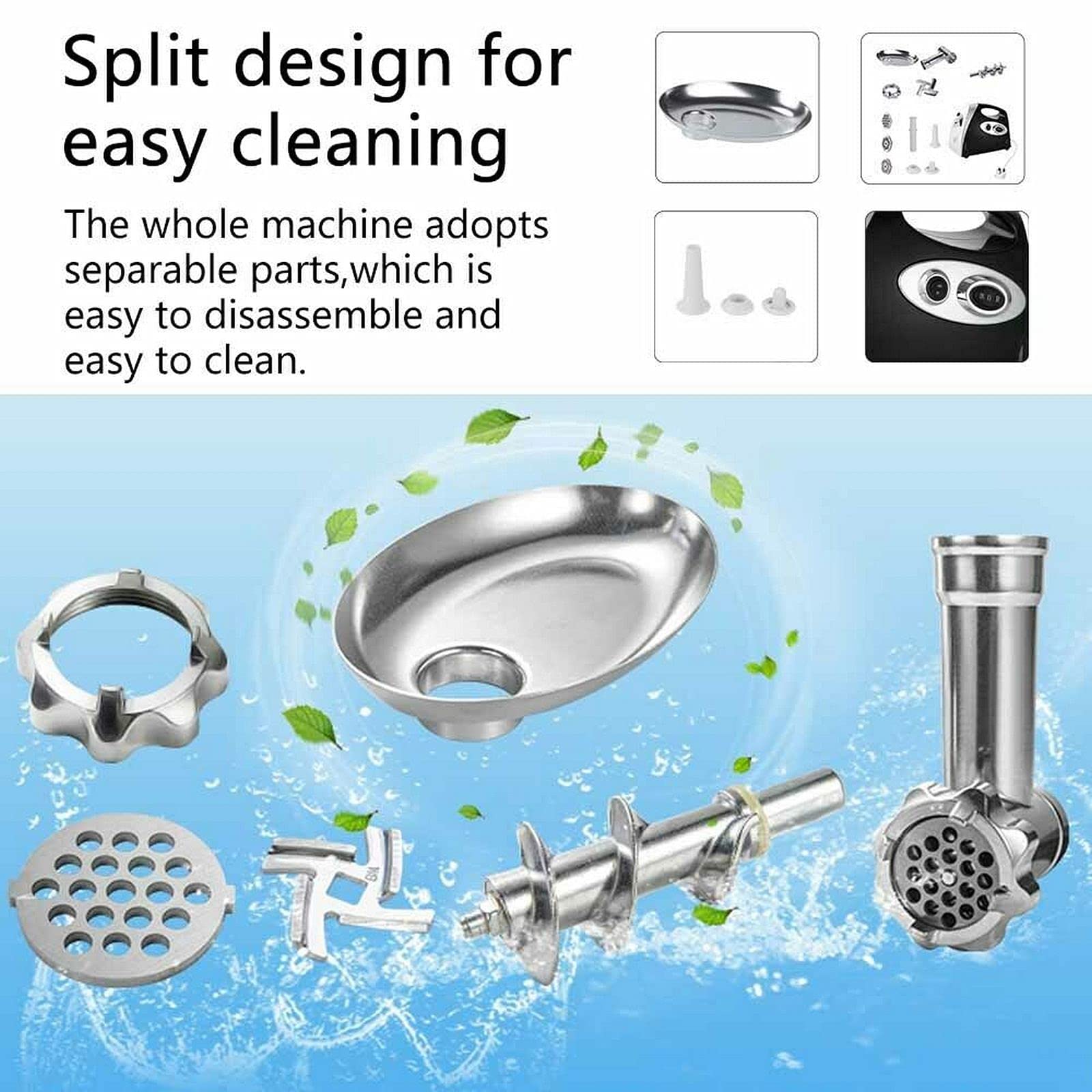 - Easy to Clean: The stainless steel blades, cutting plates, and other components are simple to disassemble and wash, keeping maintenance minimal.