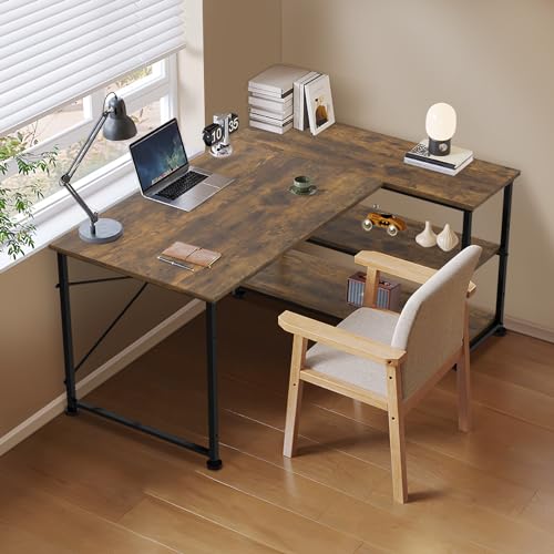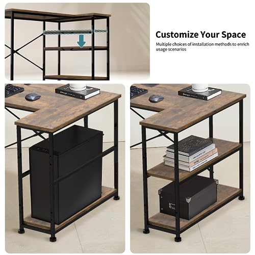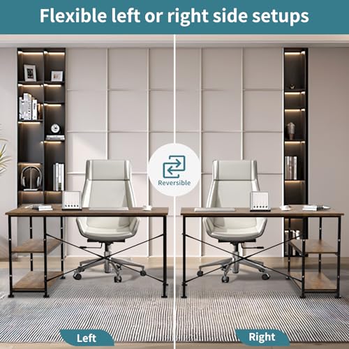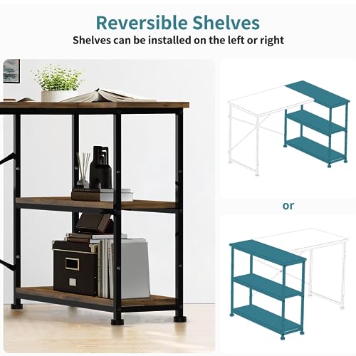 - Modern Reversible Design: L-shaped corner desk (110 x 50-80 x 75 cm) with flexible storage shelves that can be installed on either side based on your preference.