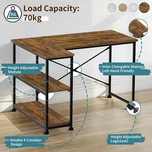 - TRIUMPHKEY 110CM L Shaped Corner Desk | Includes Shelves | Reversible Left or Right Computer Workstation -