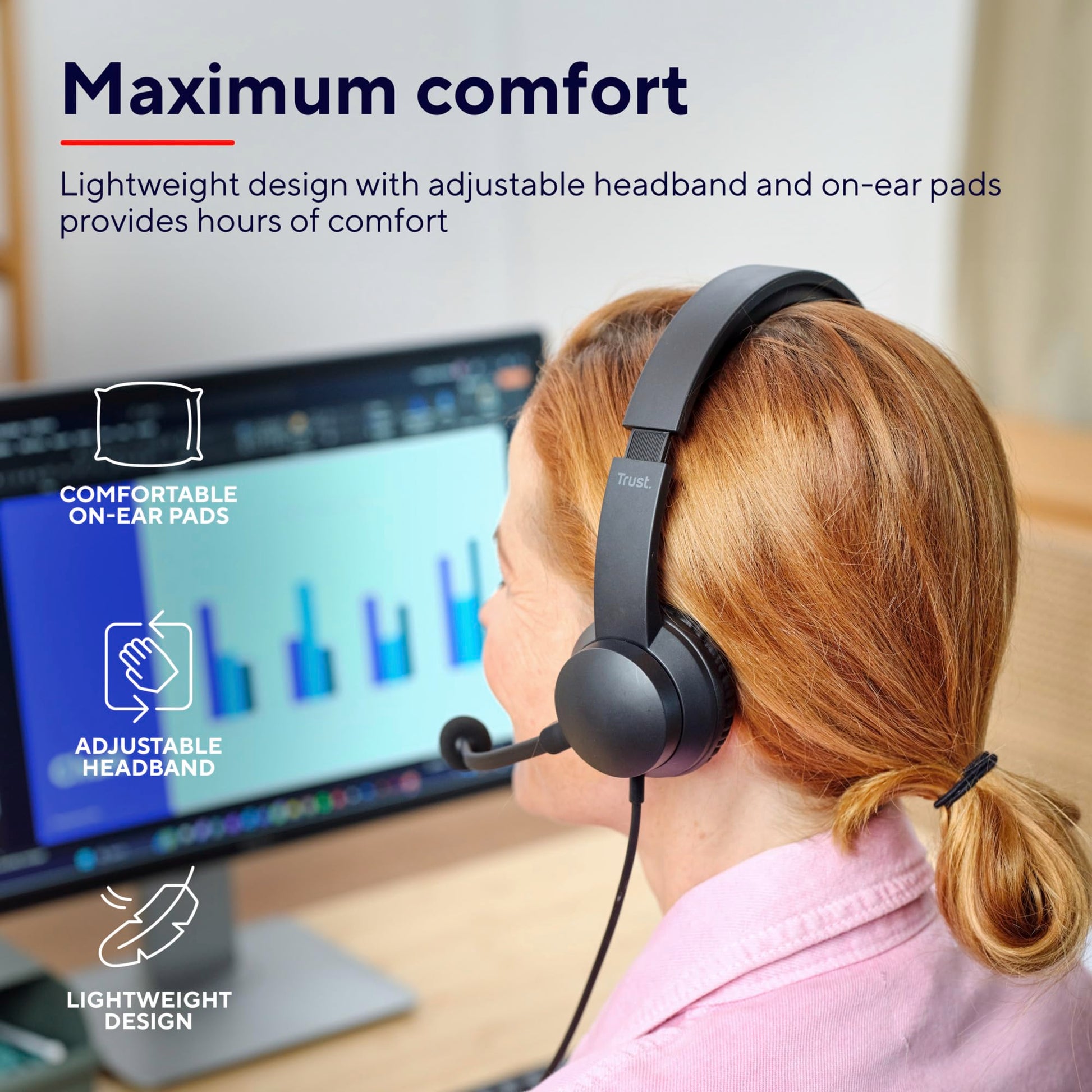 - Trust Roha II USB Headset | with Microphone | On-Ear Lightweight Design | Adjustable Headband -