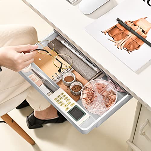 - Under Table Drawer Storage with 5 Stickers | Large Hidden Desktop Drawer Tray -