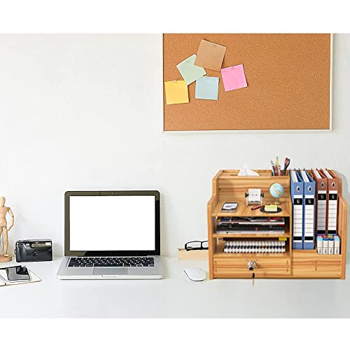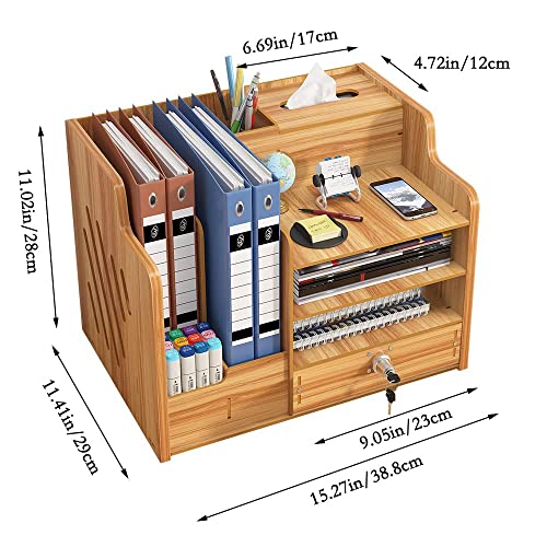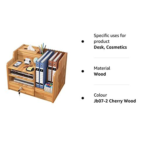 - Updated Wooden Desktop Organiser with Drawer - Large Capacity Desk - Tidy Storage Holder -