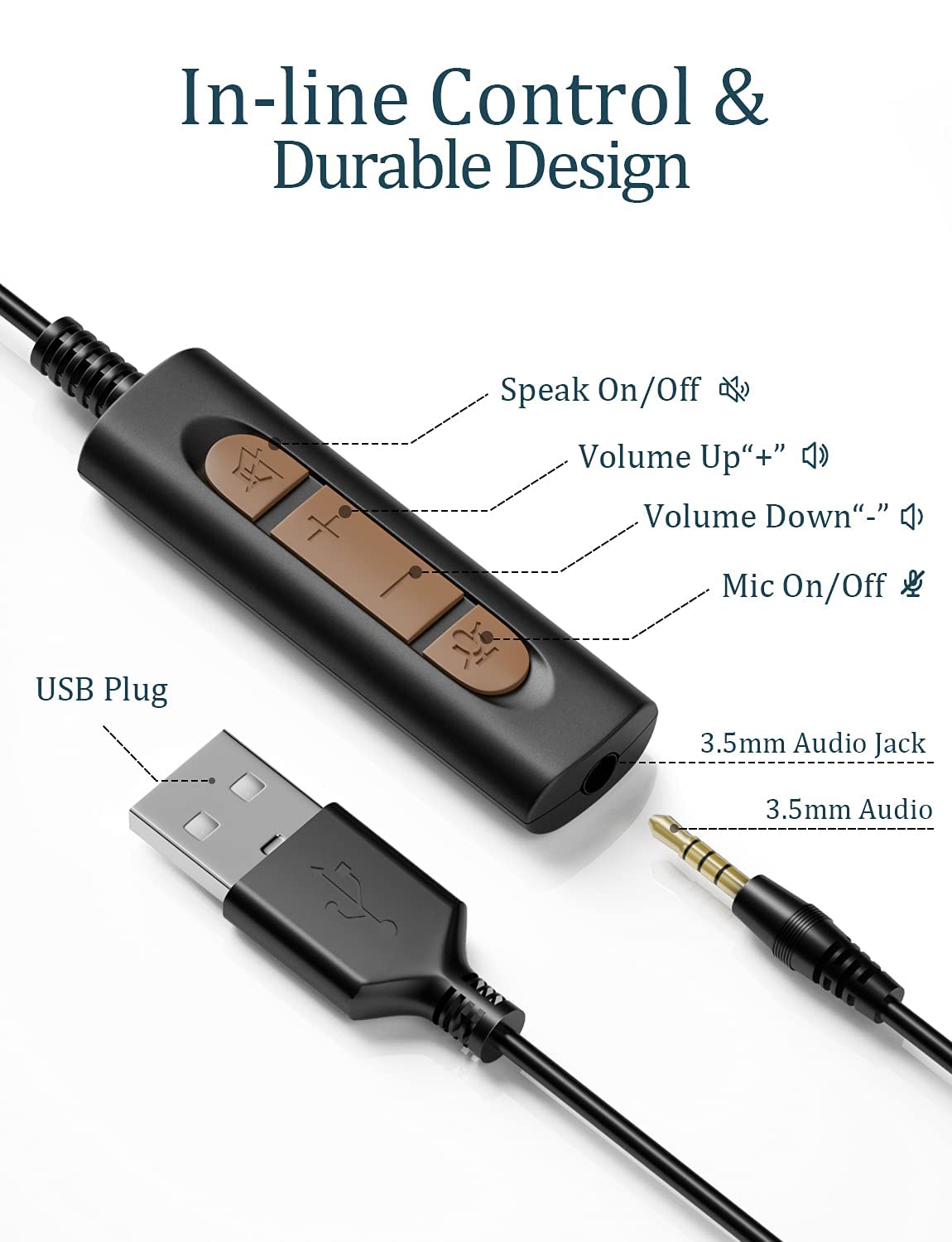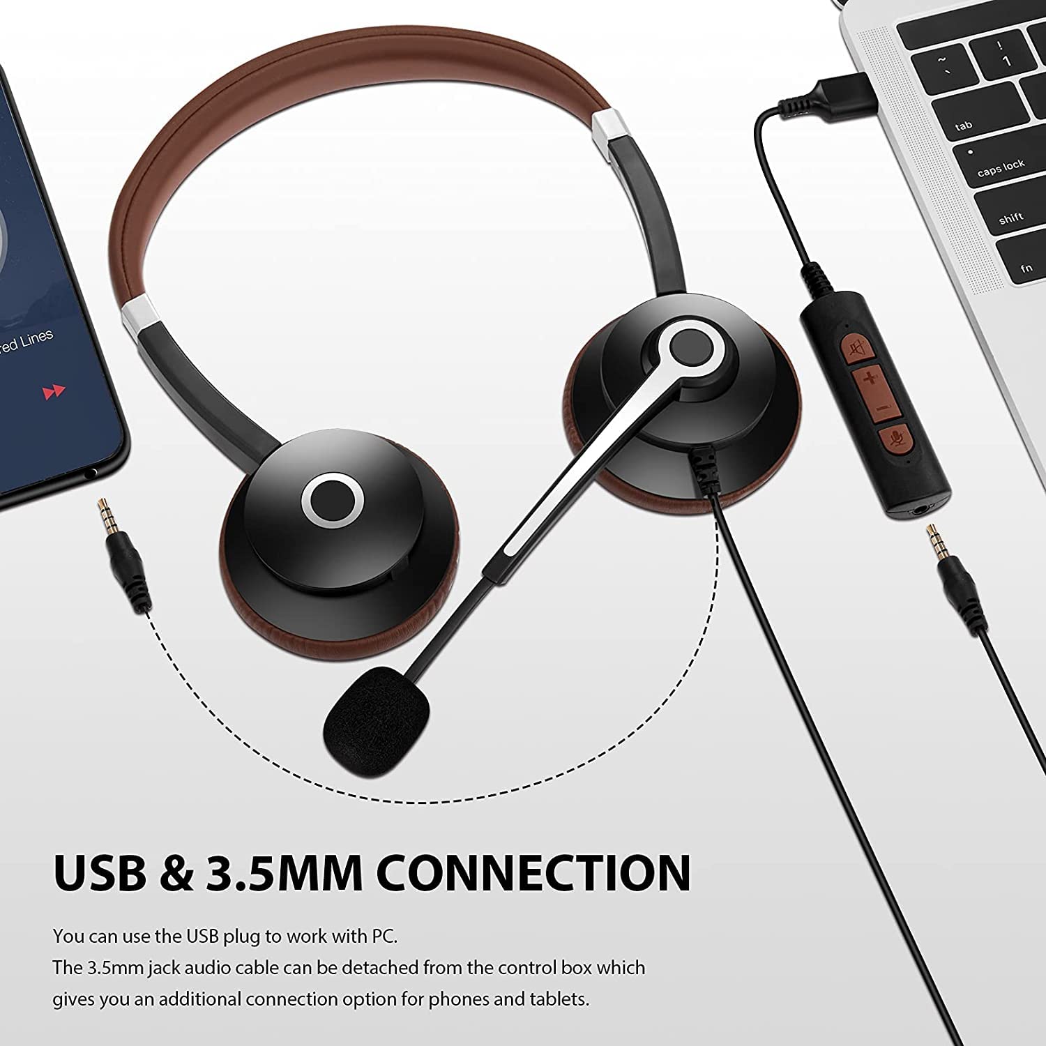 - USB Headset with Microphone for Laptop, 3.5mm Jack & USB Adapter -