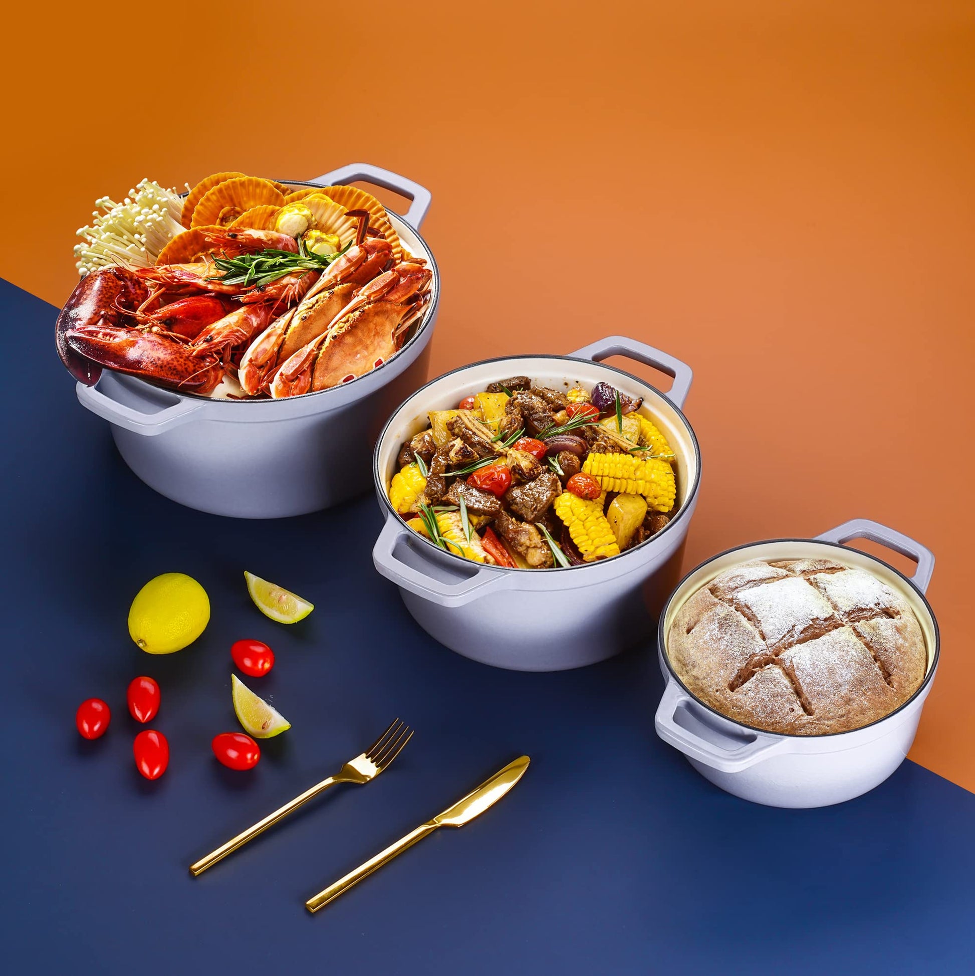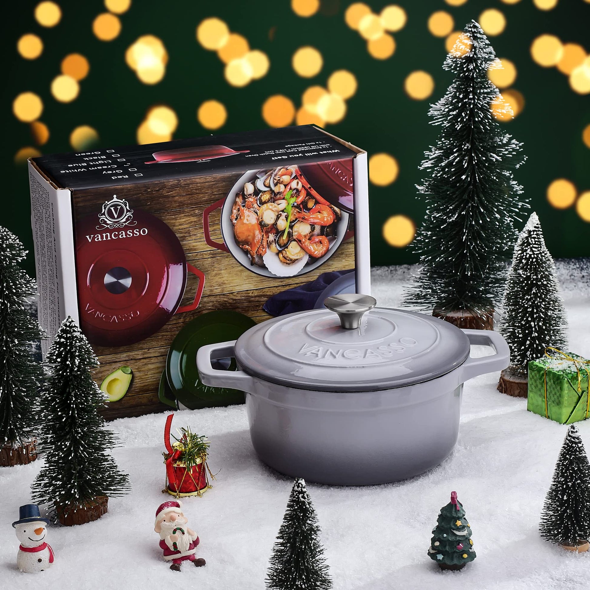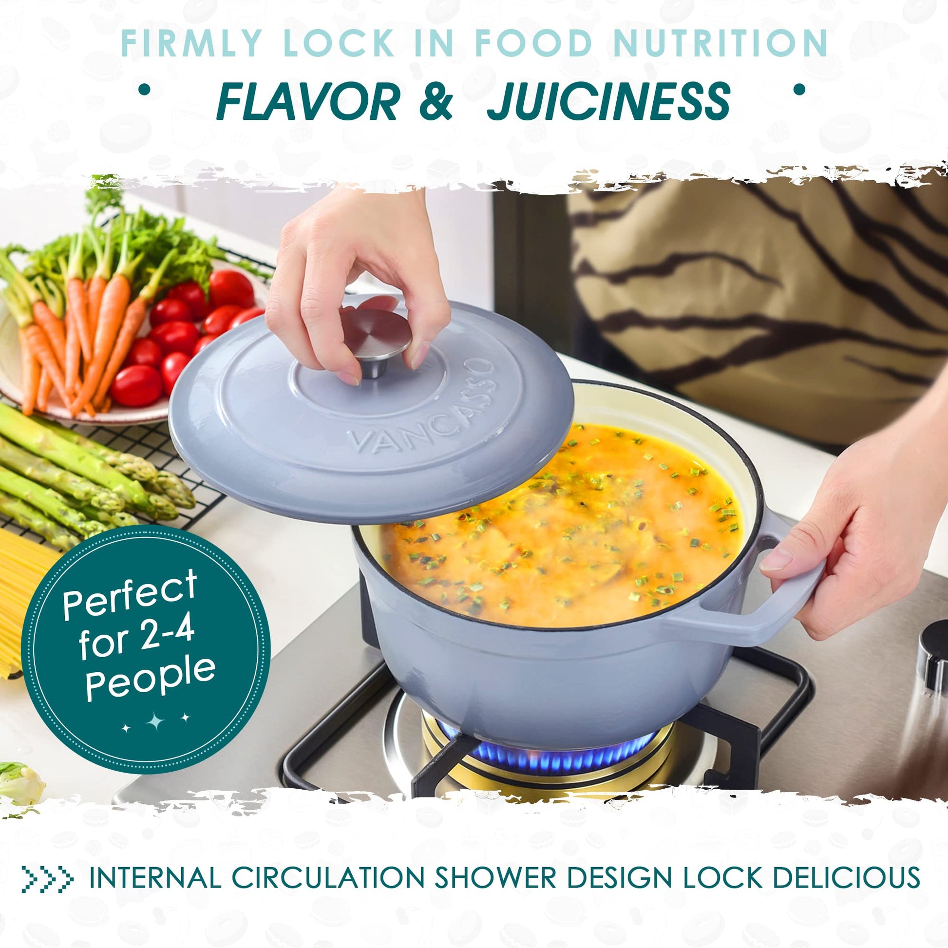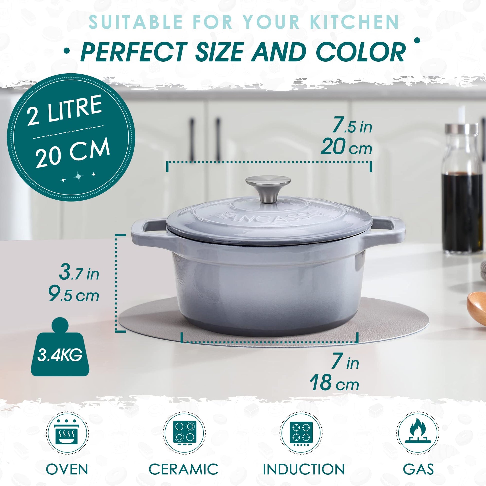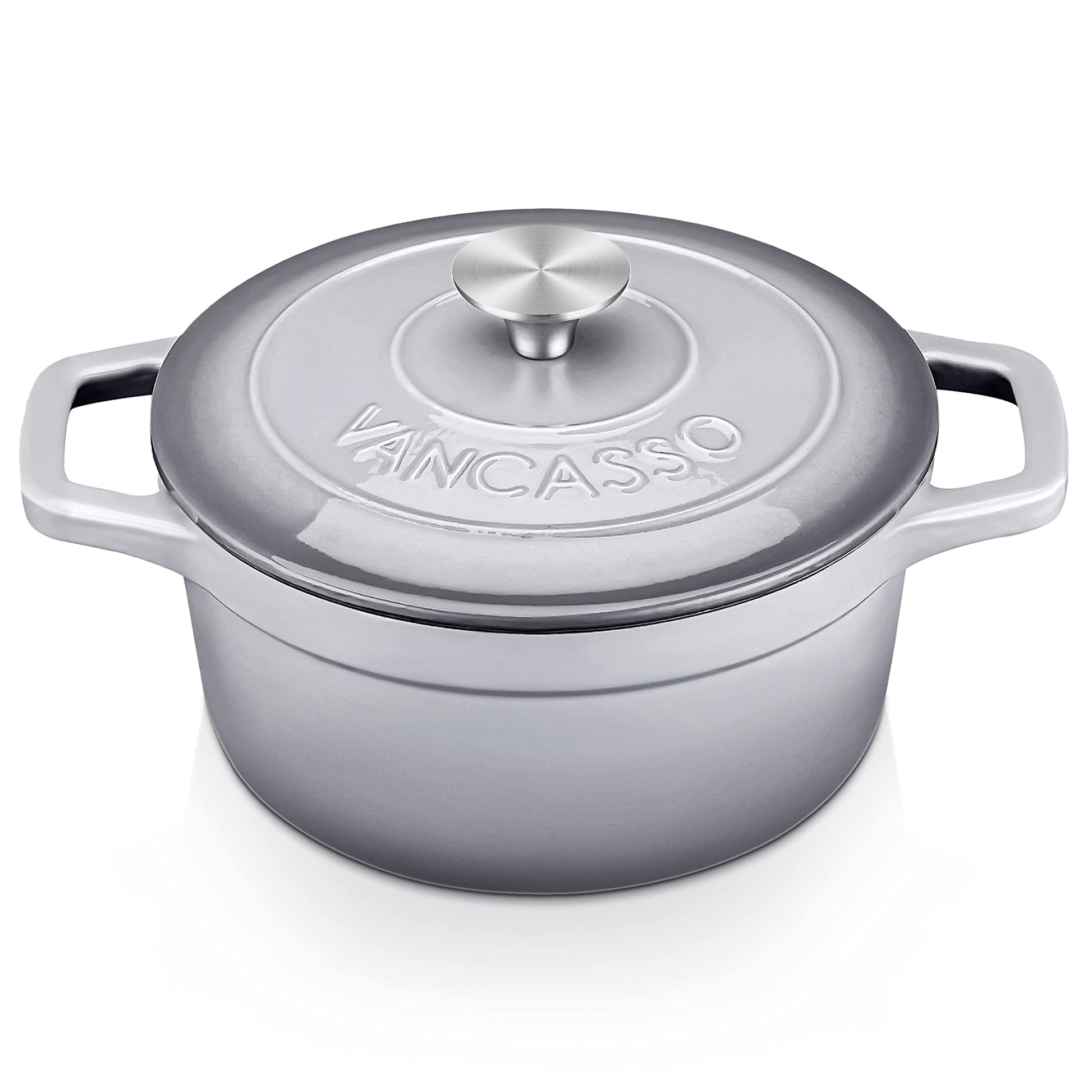- Vancasso Dutch Oven, 2L Grey Cast Iron Pot with Stainless Steel Knob Lid, Naturally Non-Stick - 20cm -