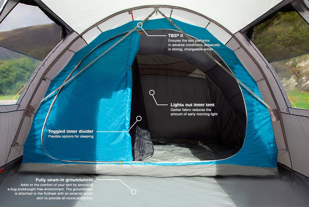 - Vango Lulworth Tent For 6 Person For Camping & Hiking Vivid Grey, Size 500 -