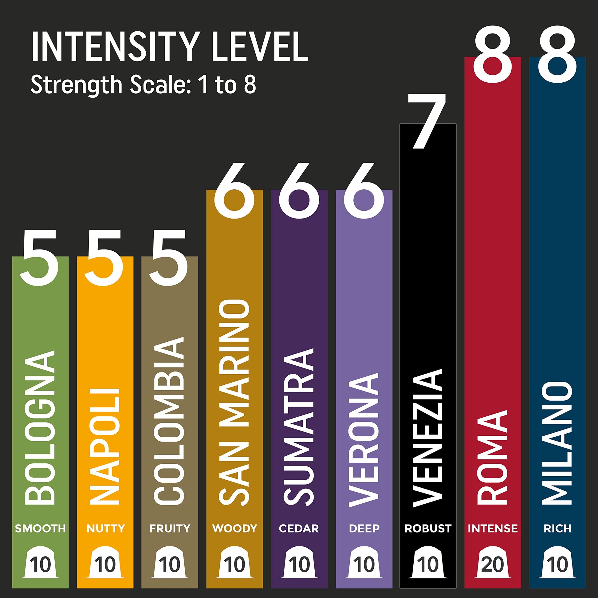 - Variants Included: Espresso Roma, Espresso Venezia, Espresso Verona, Espresso Torino Decaf, Espresso Sumatra, Espresso Napoli Signature Blend, Espresso Bologna, Lungo San Marino, Lungo Colombia