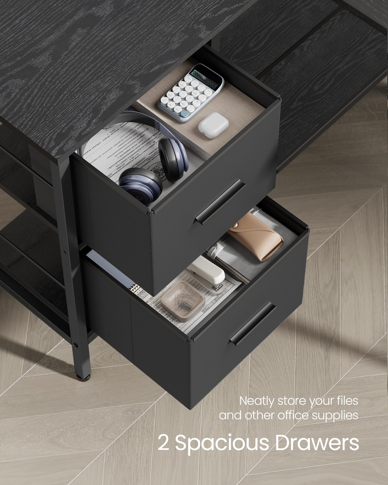 - Ample Storage: Two spacious drawers and an adjustable middle shelf (with 3 height levels) provide room for files, office supplies, and more.