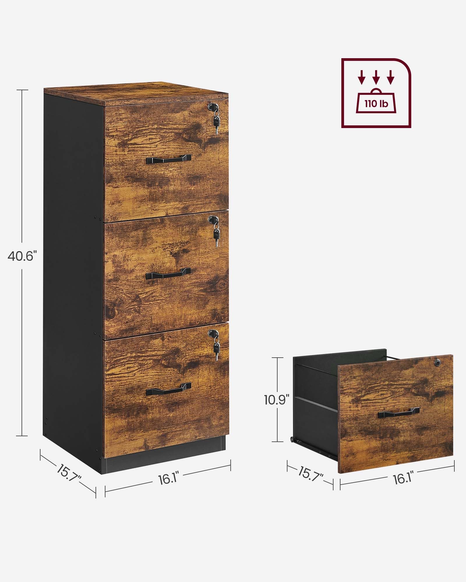 - Top Pick by Top Dad: With 3 spacious file drawers, this vertical file cabinet offers ample storage while maintaining a small footprint of just 15.7”D x 16.1”W x 40.6”H—perfect for dads who need to keep their papers organized without cluttering their workspace.