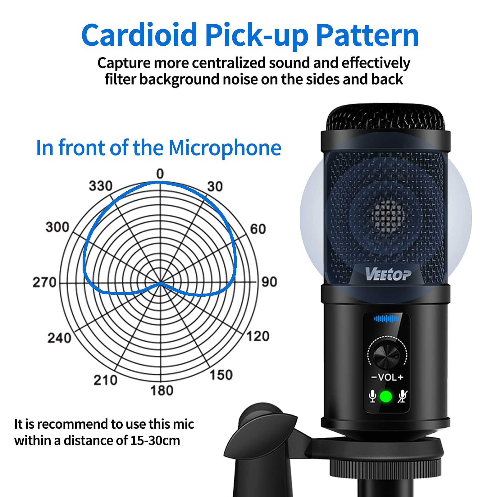 - Cardioid Pick-Up Pattern: Focuses on sounds directly in front of the microphone while filtering out noise from the sides and back for professional-quality recording.
