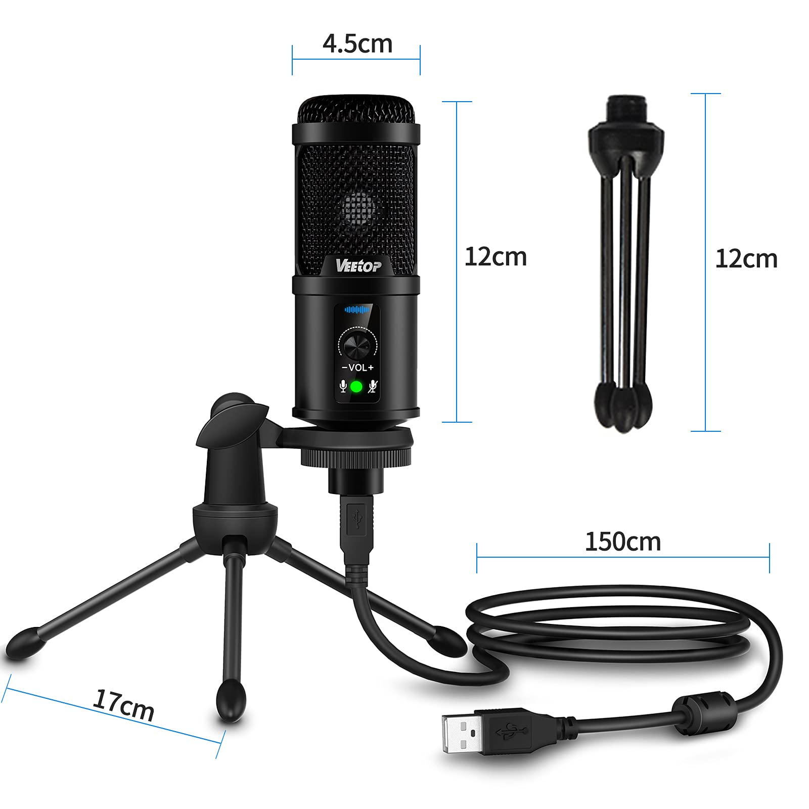 - Included in the Box: USB Microphone, Tripod Stand, Foam Windscreen, User Manual
