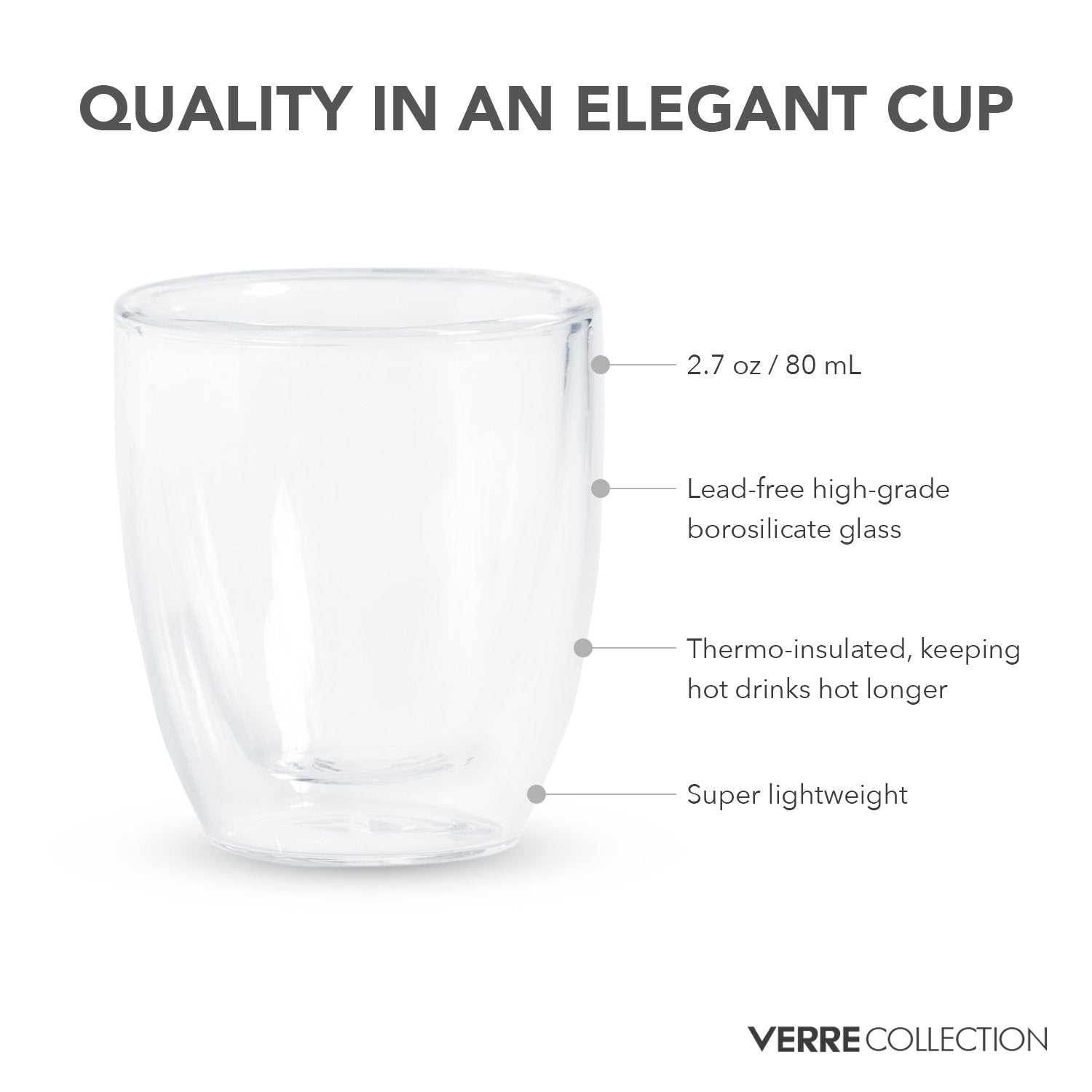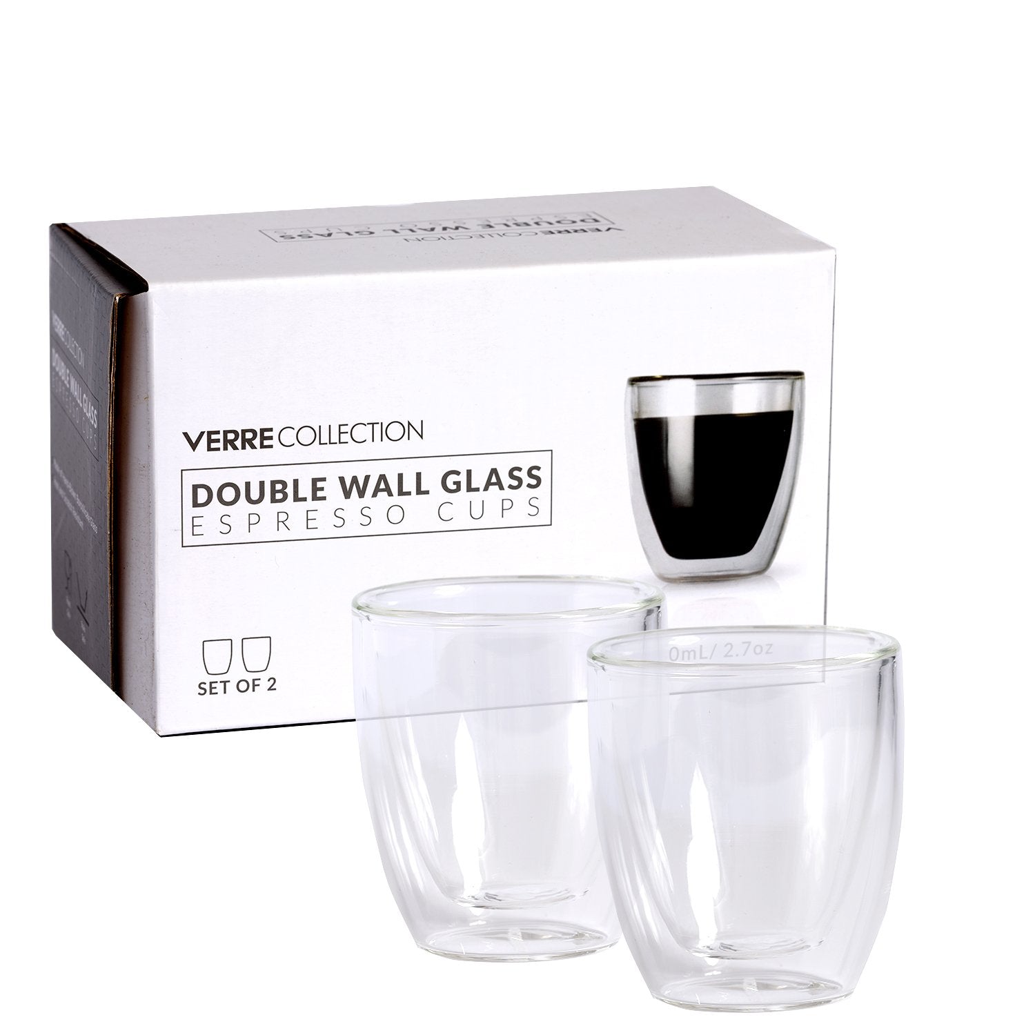 - Verre Collection Double Wall Glass Espresso Latte Cappuccino Mug, Coffee Cup | Set of 2 (2, 2.7 oz) (80 ml) -