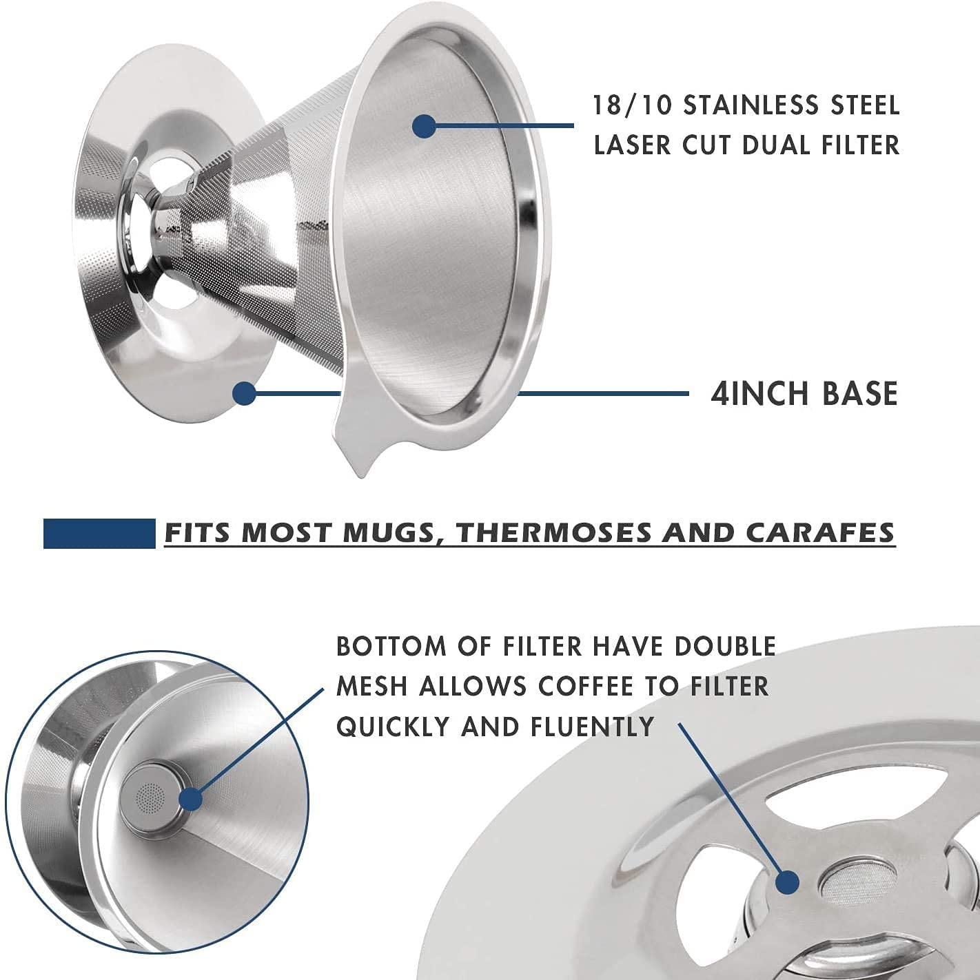 - Excellent Filtration Effectiveness: Crafted from high-density, food-grade stainless steel with a fine mesh design, this filter efficiently removes coffee grounds while retaining the oils from the beans for a mellow and flavorful cup of coffee.