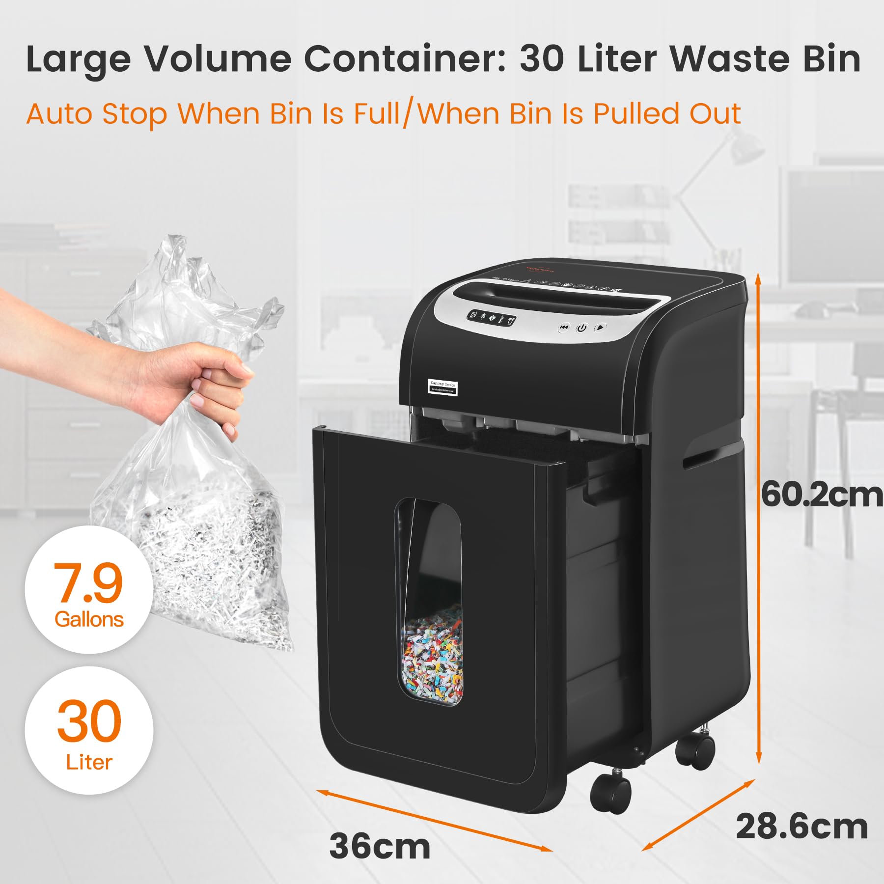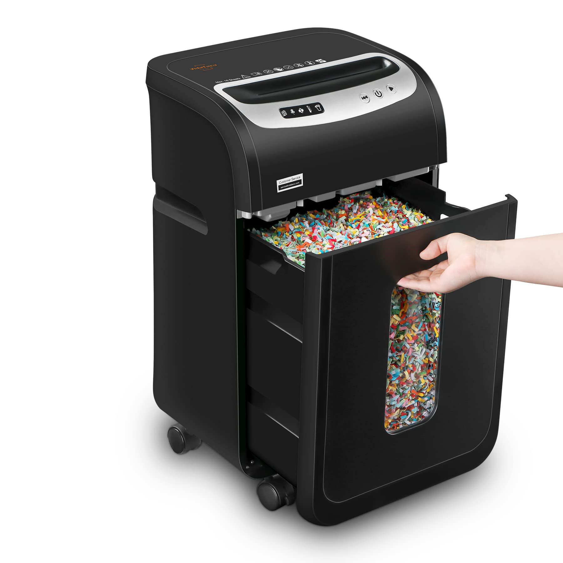 - Maintenance: Empty the bin regularly to prevent overloading and keep the shredder functioning smoothly.