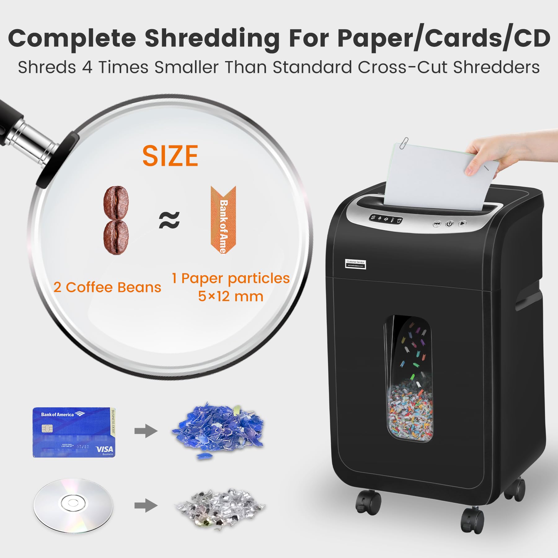 - Versatile Shredding: Handles staples, paper clips, credit cards, CDs, and junk mail with ease, saving time and effort.