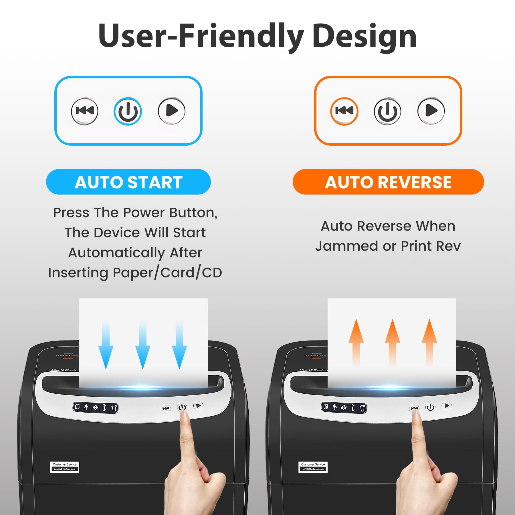 - Anti-Clog Technology: Features auto-start and auto-reverse functions to prevent paper jams and ensure smooth operation.