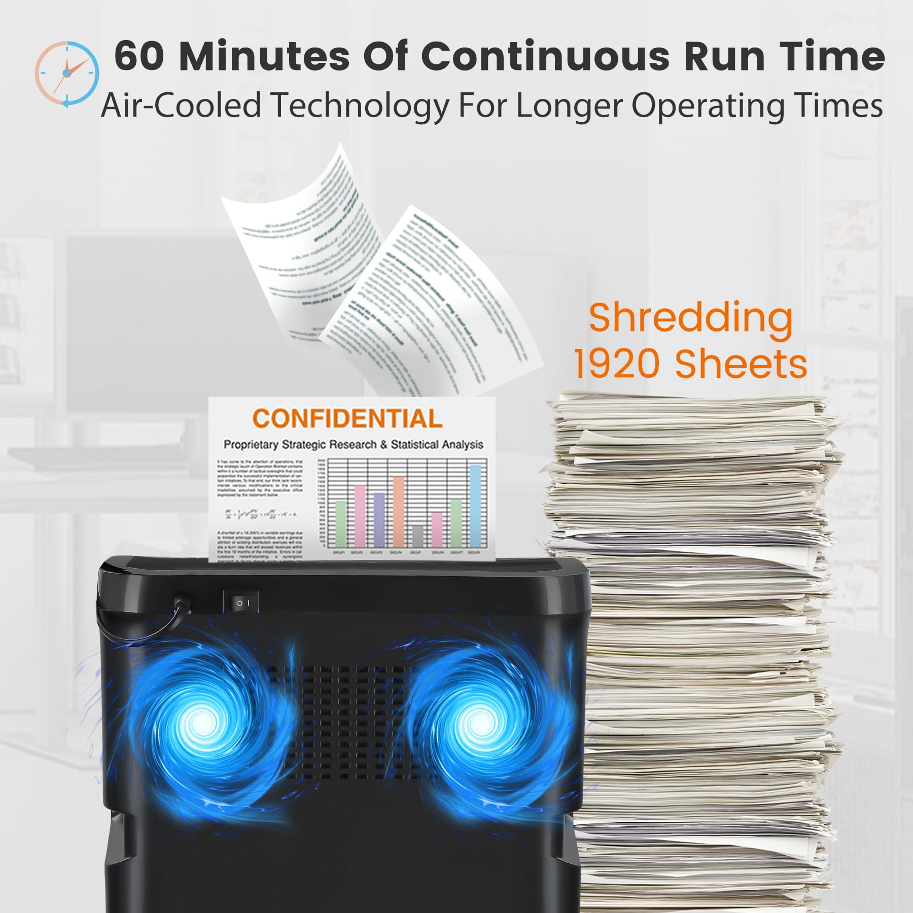 - 60-Minute Continuous Operation: Designed with an advanced cooling system for extended shredding and a quick recovery time.