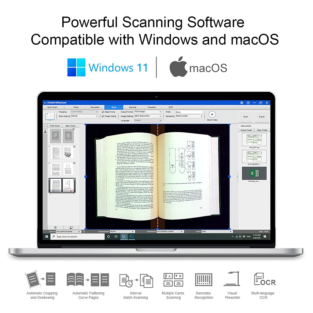 - Smart Image Optimization: Features intelligent algorithms for flattening curved pages, erasing finger marks, refining backgrounds, and splitting pages. Automatic detection streamlines the process for folded pages.