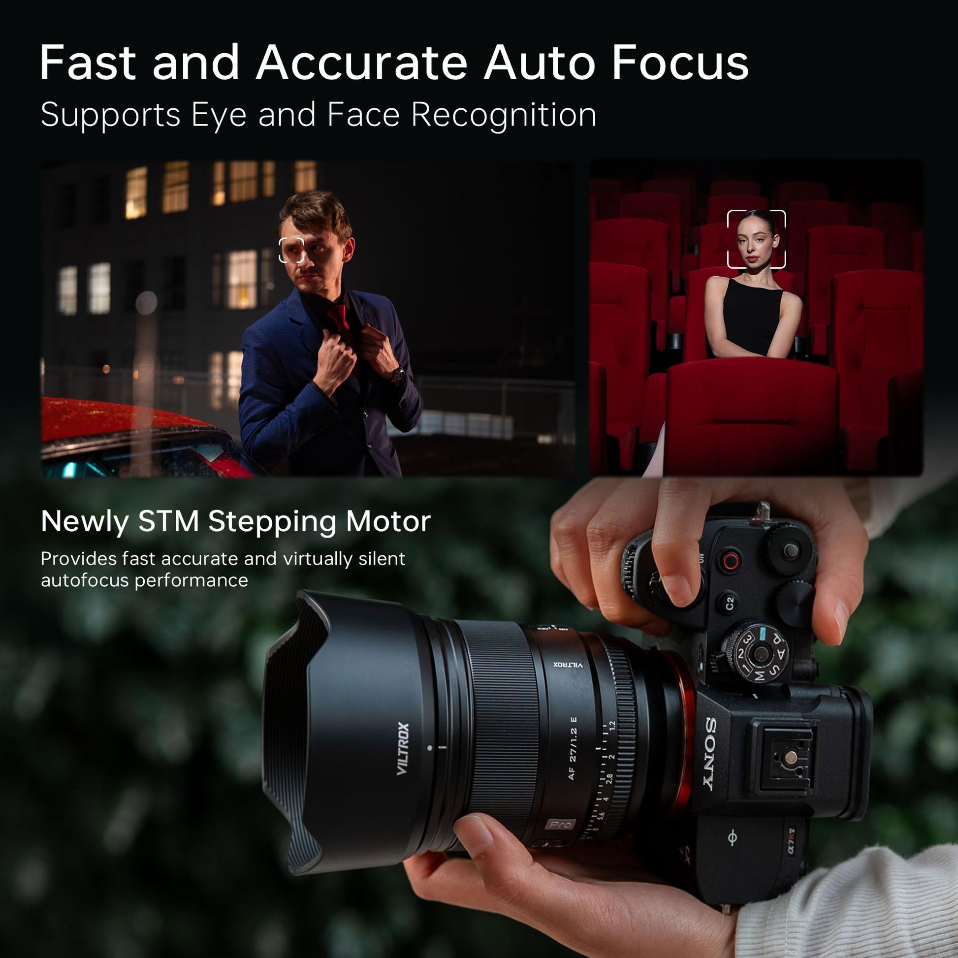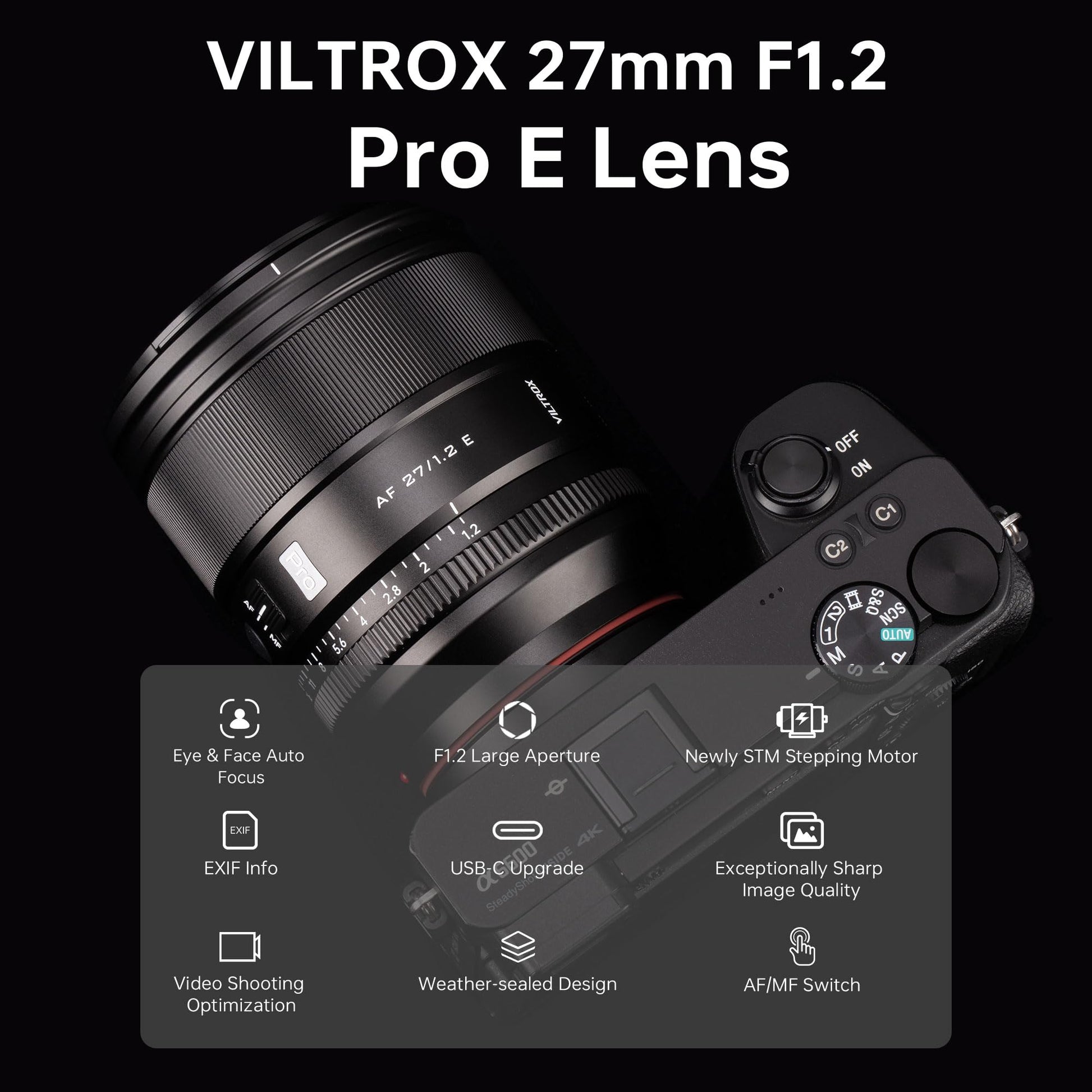 - VILTROX 27mm F1.2 Pro E Mount Lens, 27mm f/1.2 Autofocus Large Aperture APS-C Prime Lens Compatible with Sony E Mount Mirrorless a7 a6700 a6500 -