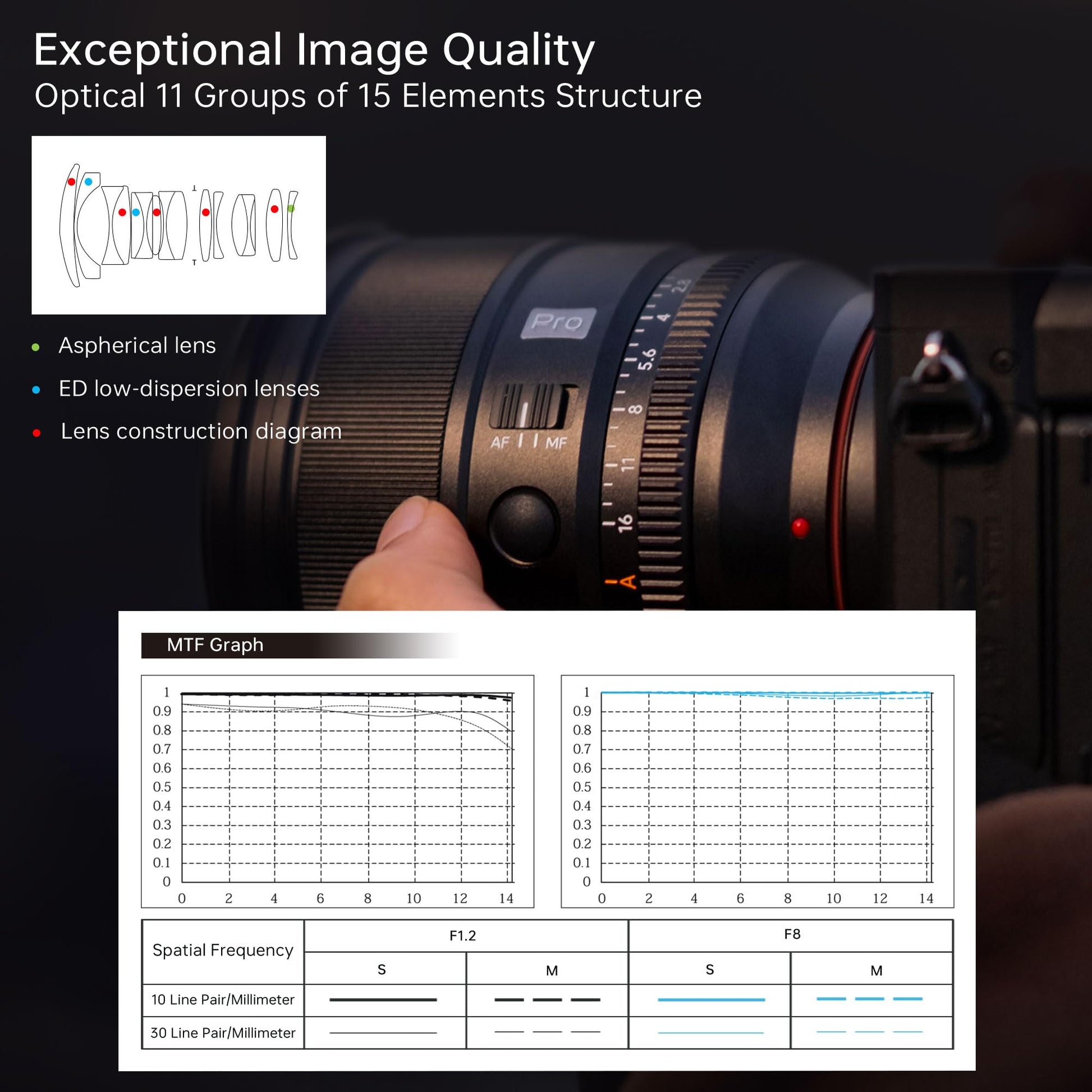 - F1.2 Super Large Aperture: Perfect for low-light photography, this lens allows higher shutter speeds and lower ISO while maintaining sharp, bright images.