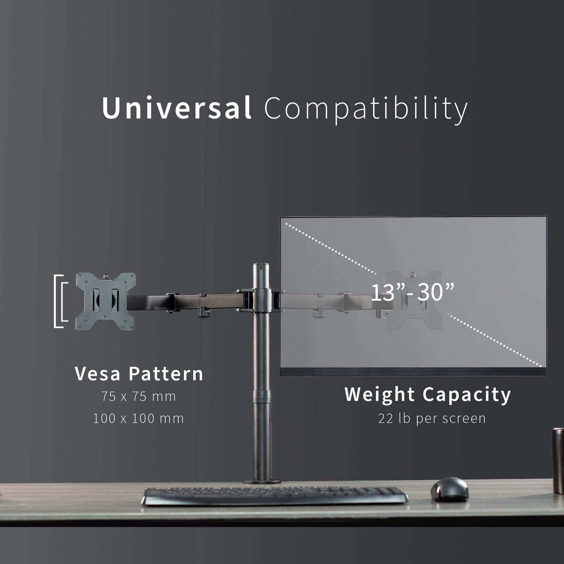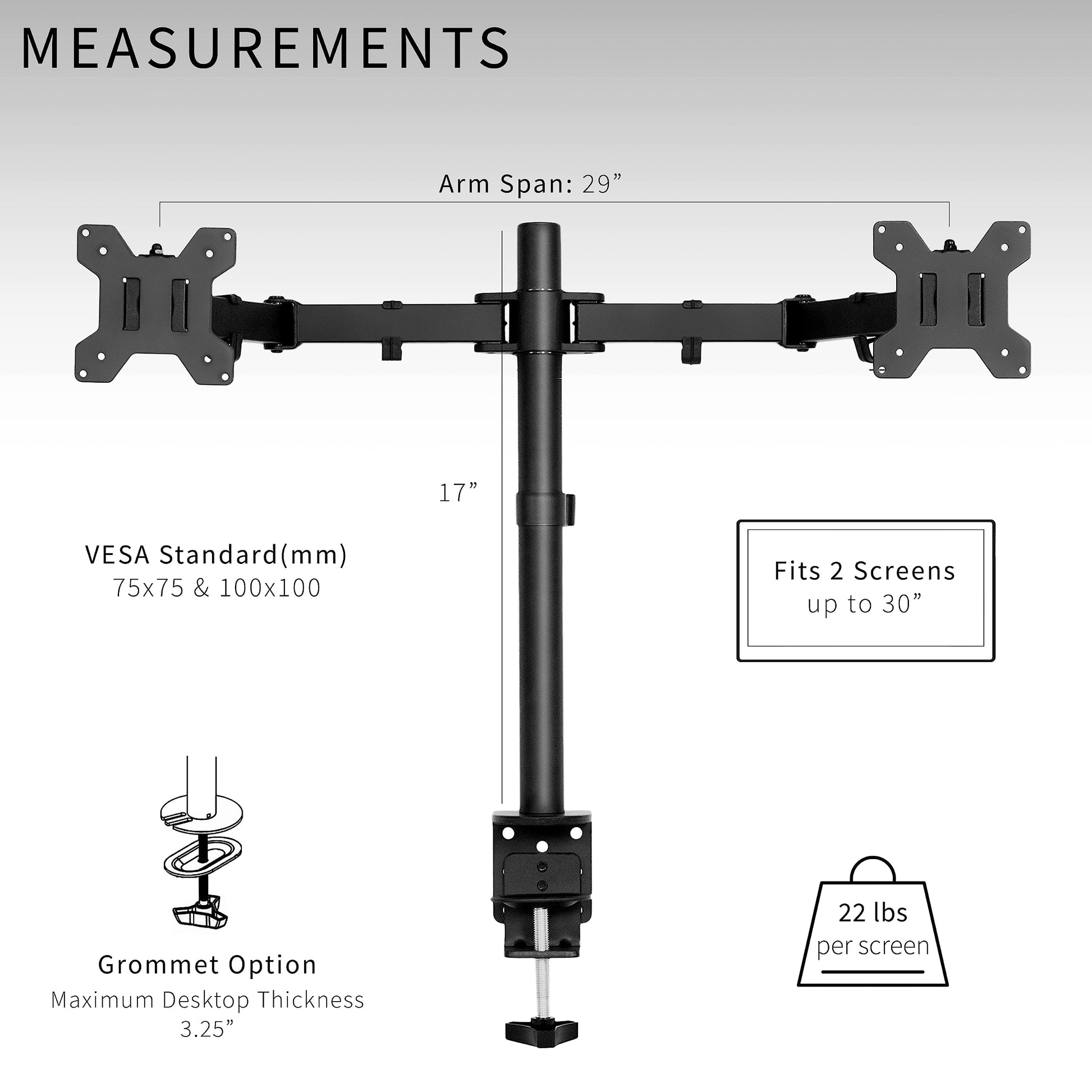 - VIVO Dual Monitor Desk Mount, Heavy Duty Fully Adjustable Steel Stand, Holds 2 Computer Screens up to 30 inches and Max 10 kg each, Black, STAND-V002 -