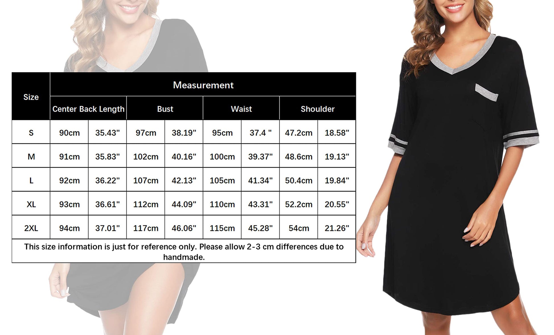 - Vlazom Women's Nightgown V Neck Sleep Shirt Oversized Nightdress Short Sleeve Casual Loungewear Sleepwear Black -