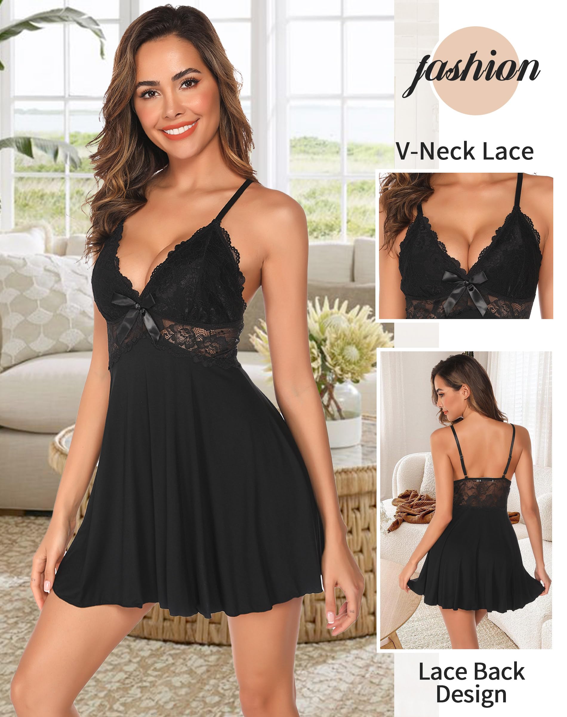 - Vlazom Nighties for Women, Ladies Negligees Lace Nightdress Spaghetti Strap Chemises Slip V Neck Sleepwear Nightgown -