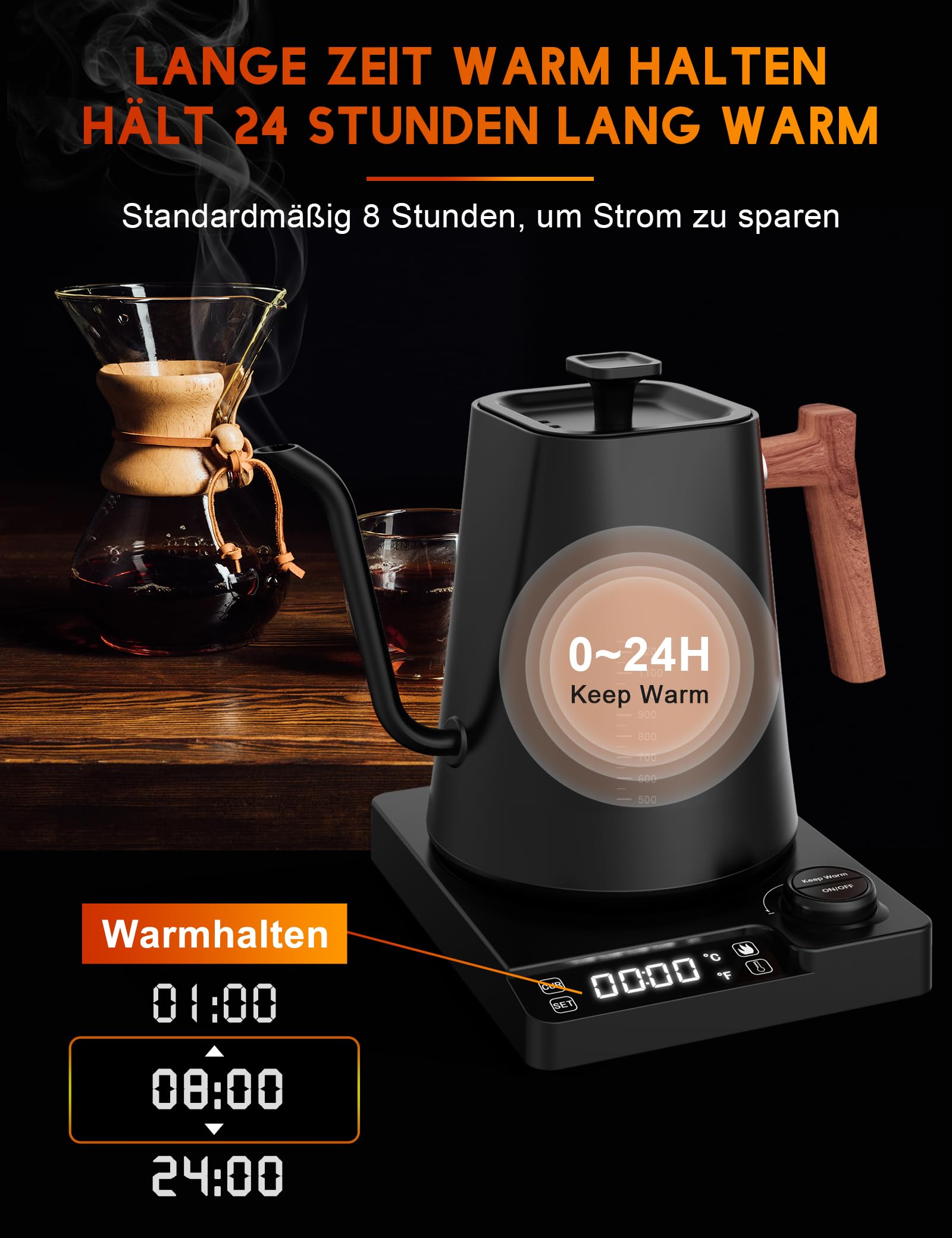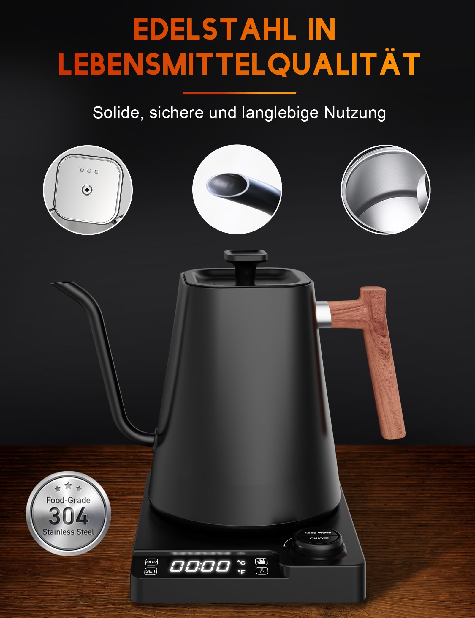 - Vmotal Stainless Steel Kettle with Temperature Setting, Gooseneck Kettle, 24-Hour Heat Function, Electric Tea Kettle with Temperature Display -