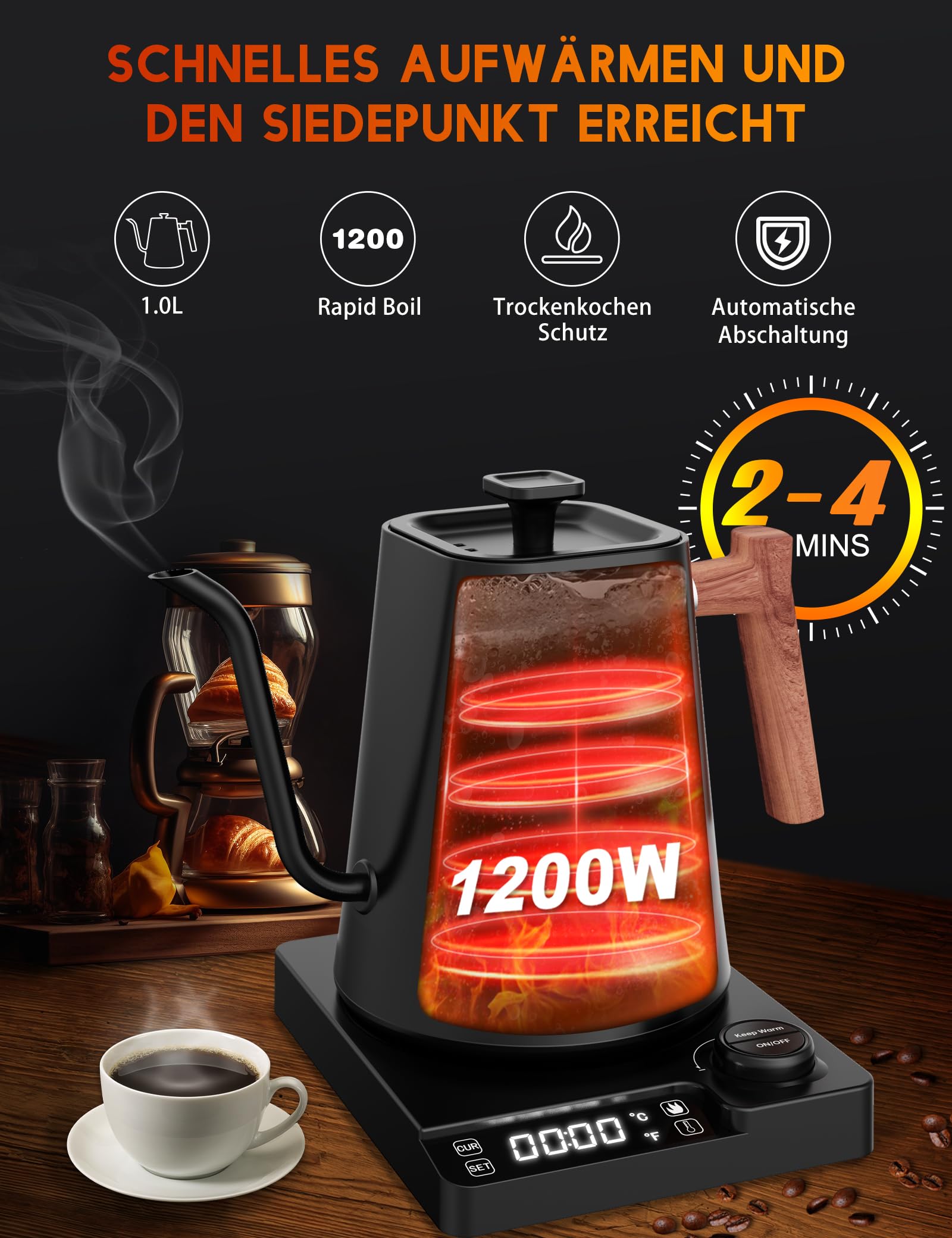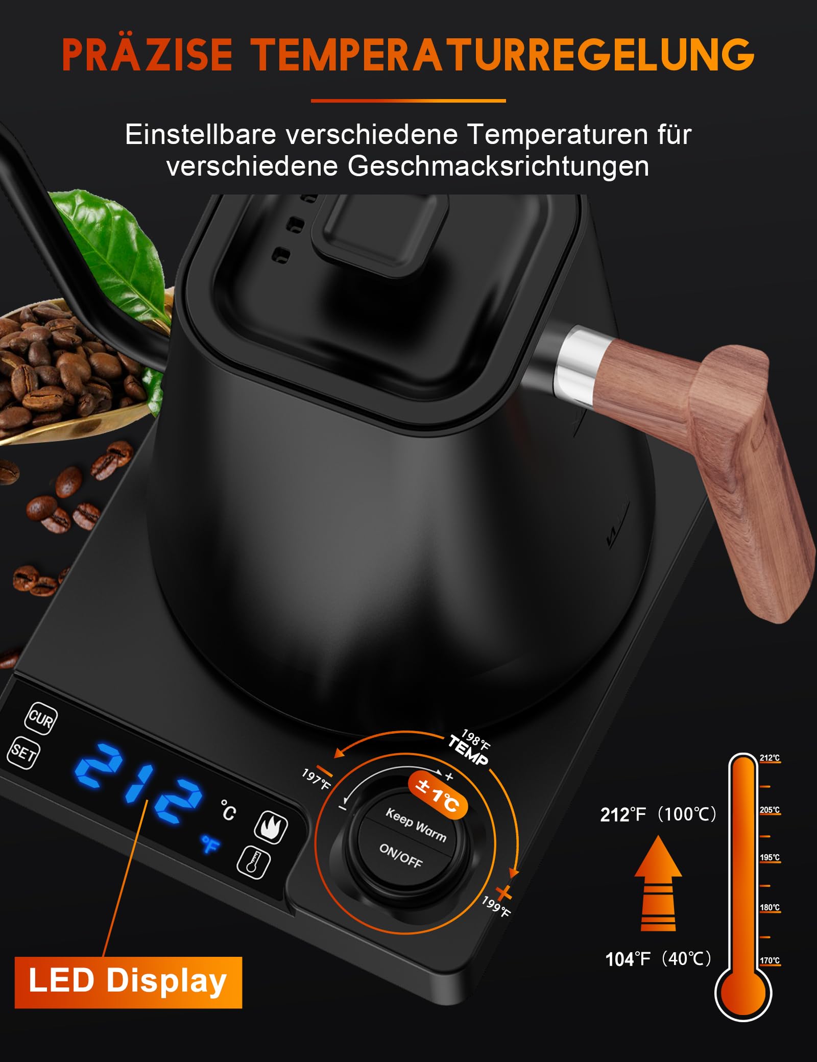 - Precise Temperature Control: Adjustable between 40°C and 100°C (104°F to 212°F), allowing for expert brewing of both tea and coffee. Plus, the ±1°C precision ensures you always hit the ideal temperature.