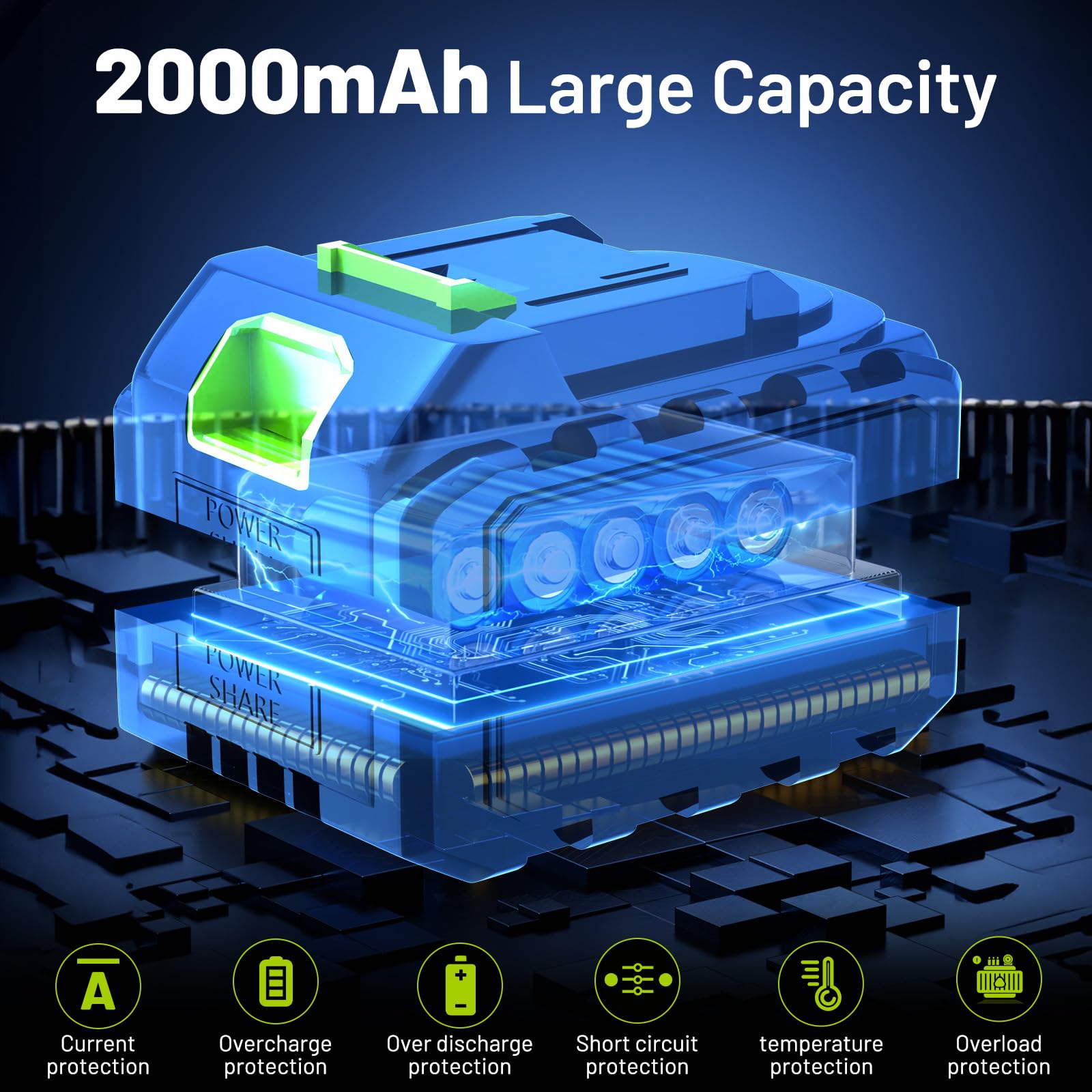 - Upgraded 2-Battery System: Each 2000mAh lithium battery lasts up to 30 minutes, allowing for continuous operation with the option to swap between the two batteries without waiting for a recharge.