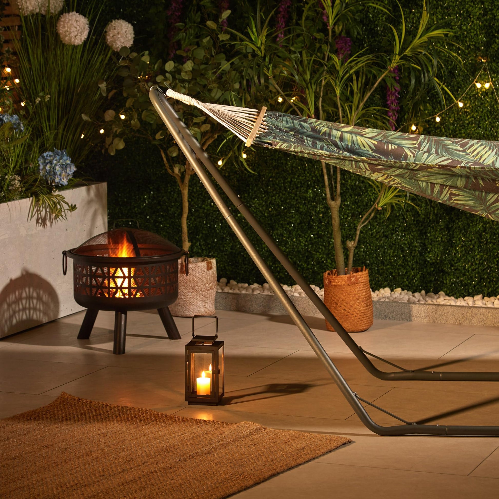 - VonHaus 1 Seater Hammock With Frame - Leaf Print 1 Person Garden Hammock with Stand -