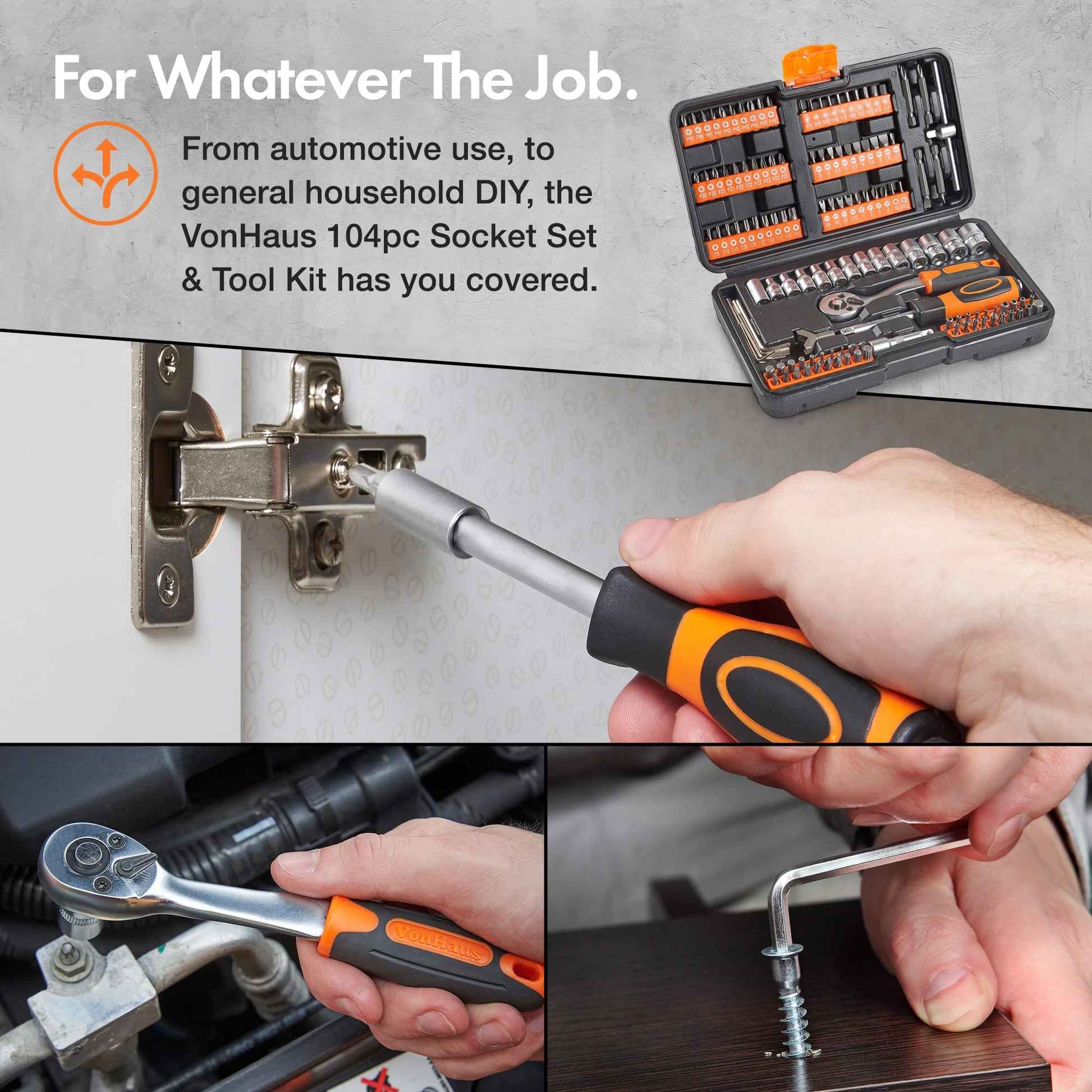 Take your home improvement and vehicle maintenance to the next level with the VonHaus 130-Piece Socket Set, a comprehensive toolkit designed for versatility, durability, and convenience.