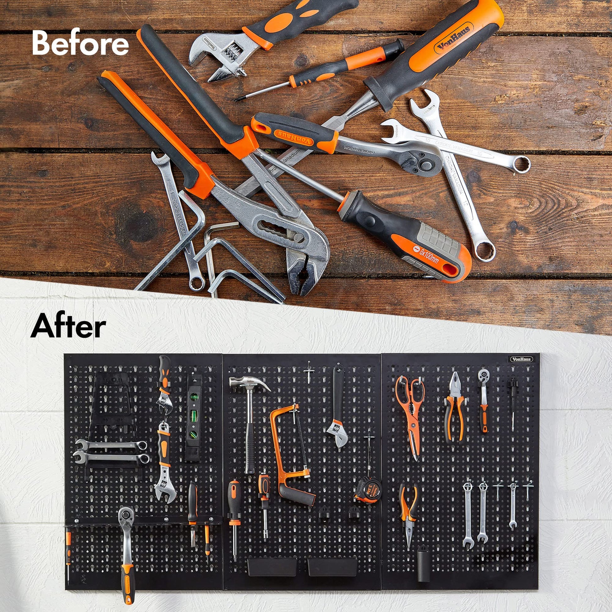 = VonHaus Tool Pegboard - 45pc - Shed and Garage Wall Storage Tool Board